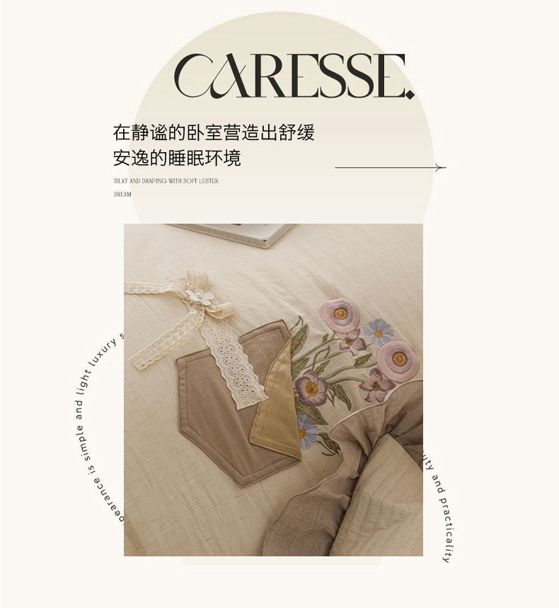(总)瑞米家居 2026新款A类棉麻提花花边款四件套-翩然乐语,翩然乐语-粉,翩然乐语-红咖,翩然乐语-芥末绿,翩然乐语-深灰
