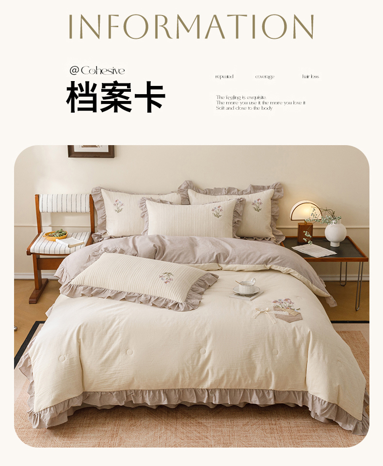 (总)瑞米家居 2025新款A类棉麻提花花边款四件套-蝶恋花,蝶恋花-粉色,蝶恋花-红咖,蝶恋花-芥末绿,蝶恋花-米色,蝶恋花-中灰