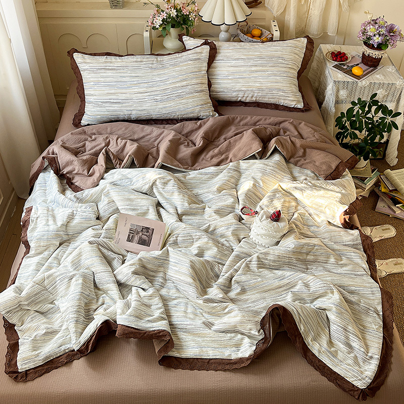 仟网汇 2026新款彩色花边木棉皱皱纱夏被夏凉被空调被四件套 甜心格格