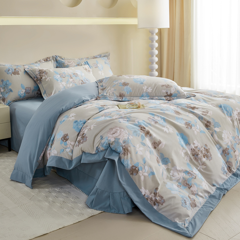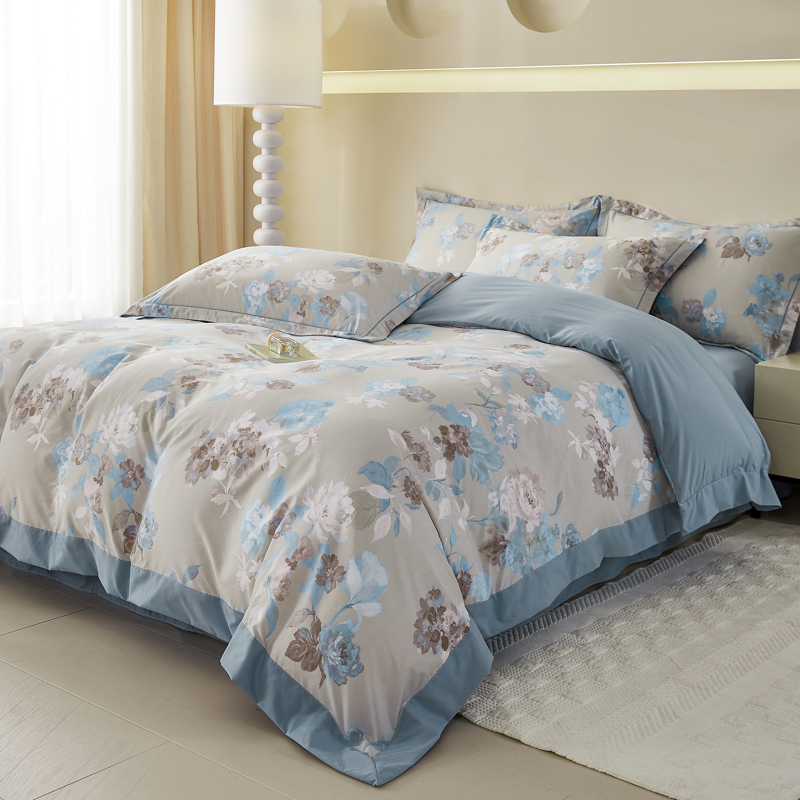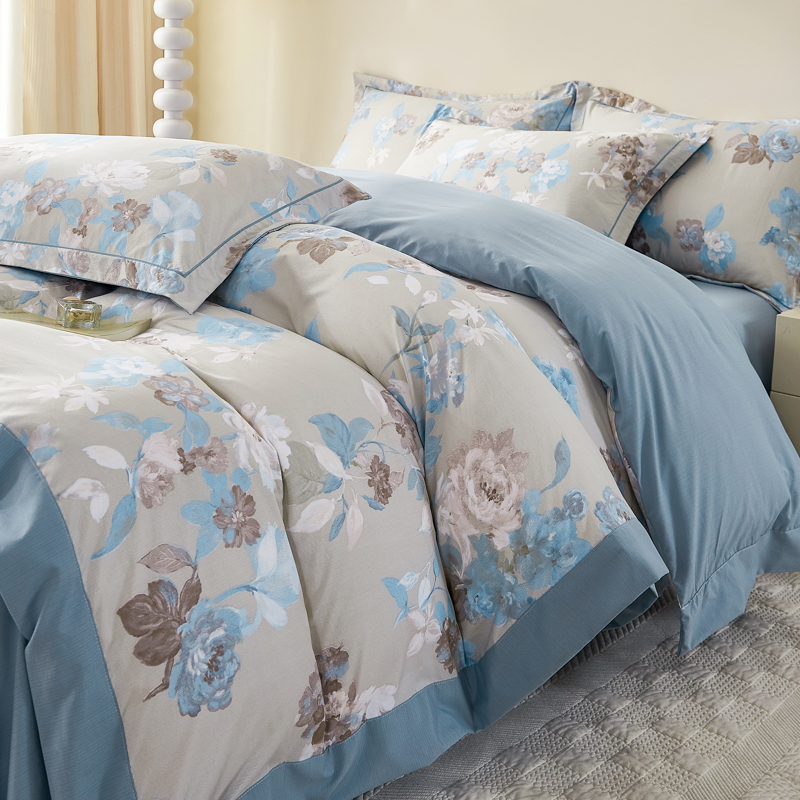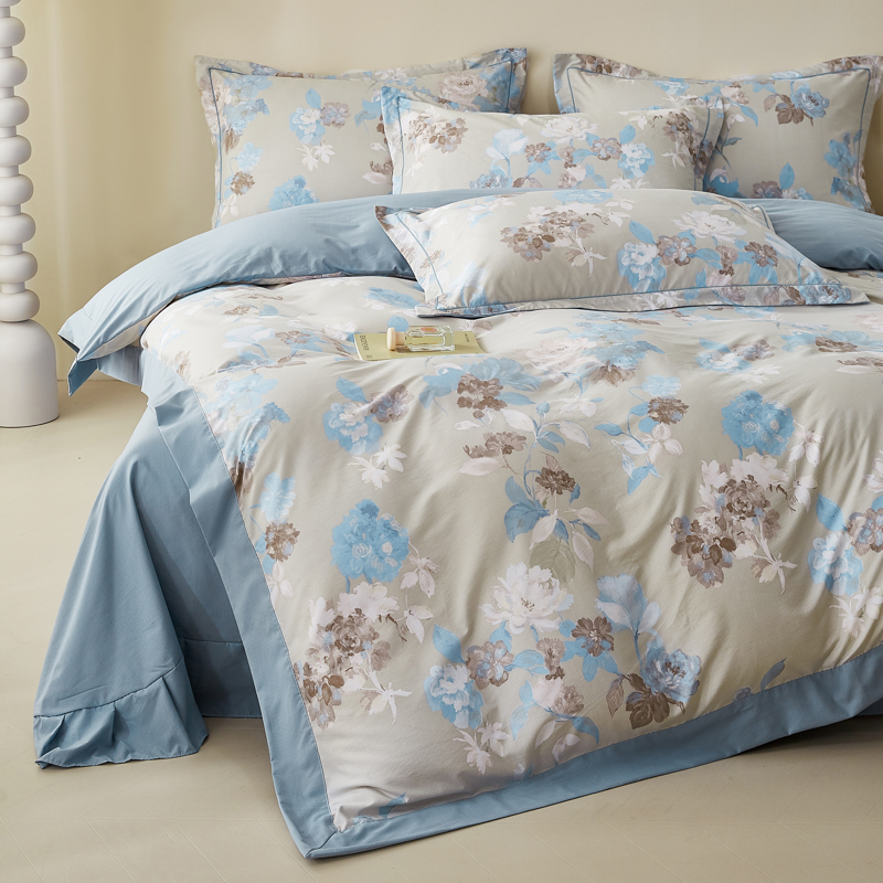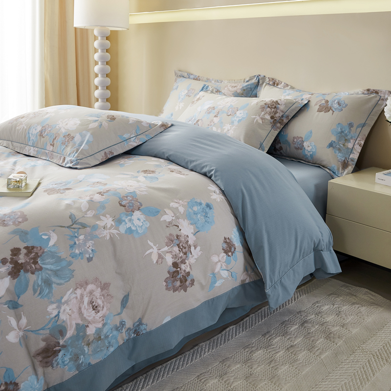漫仙阁家纺 2026新款宽边四件套 蓝影清荷
