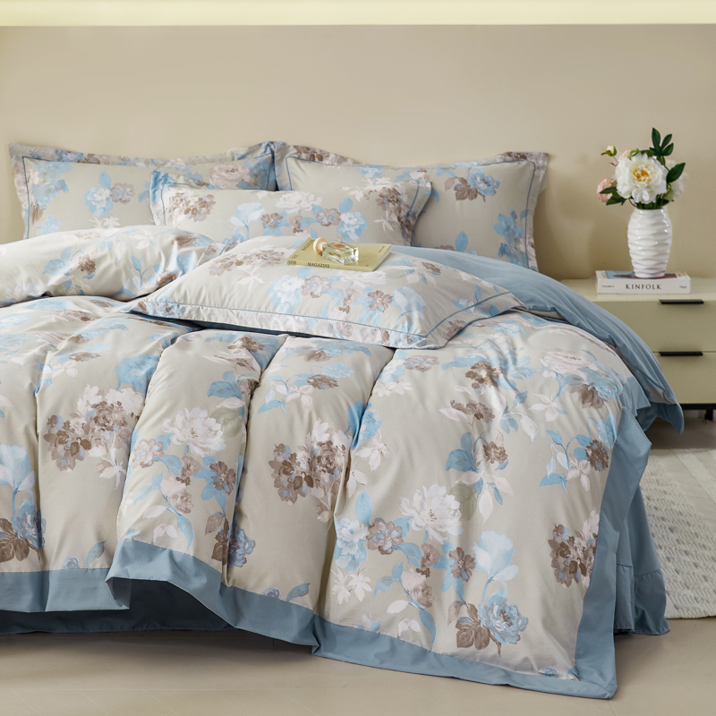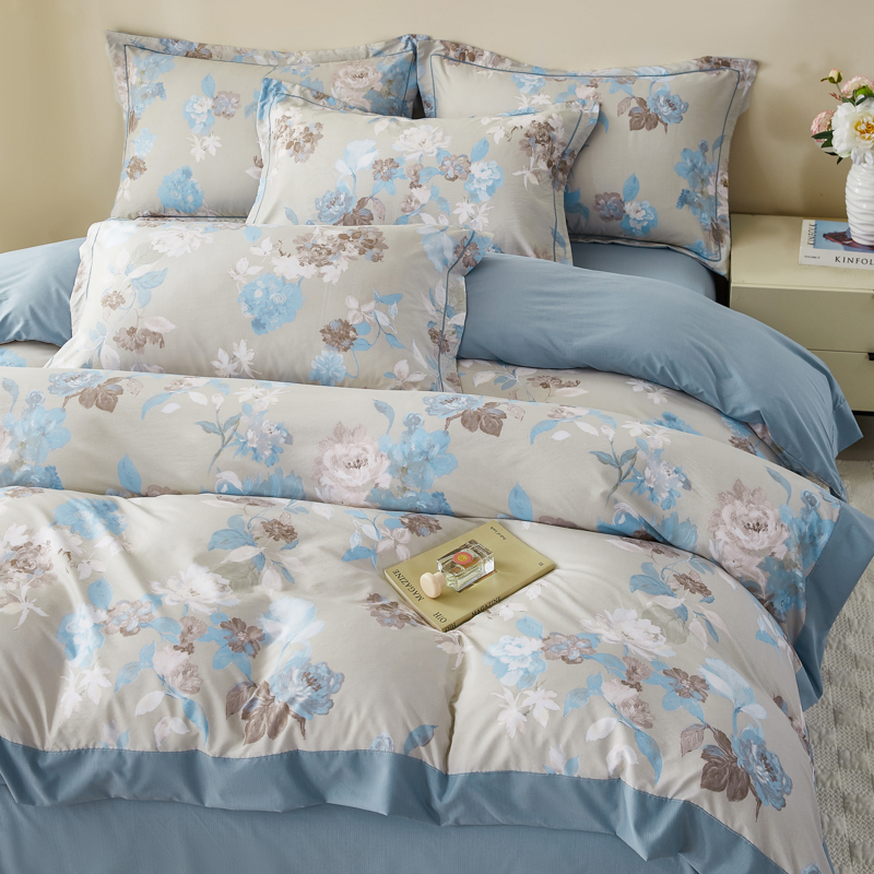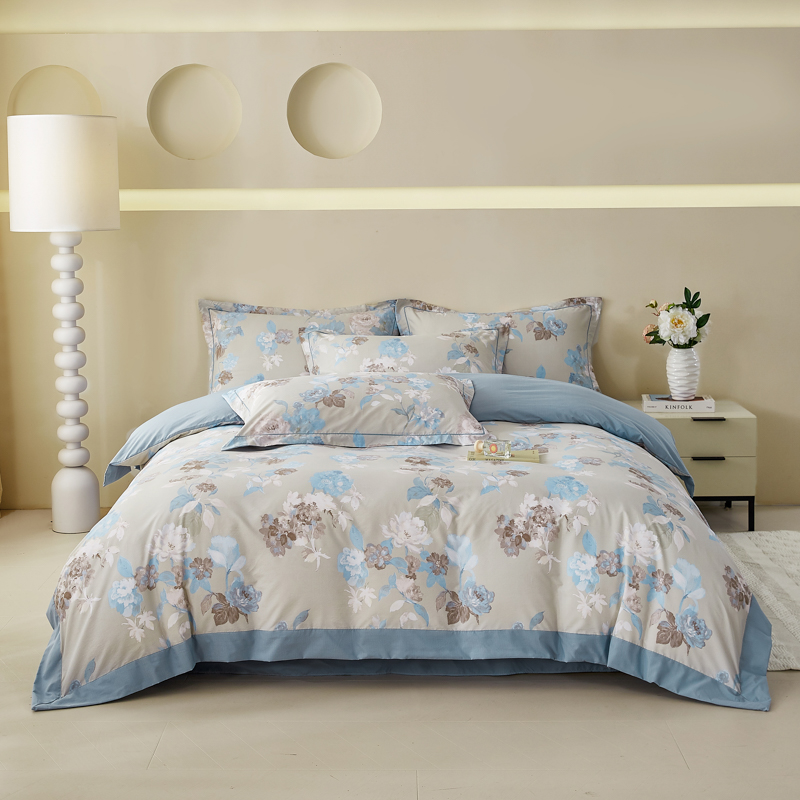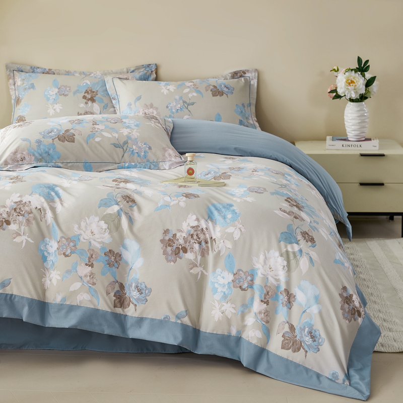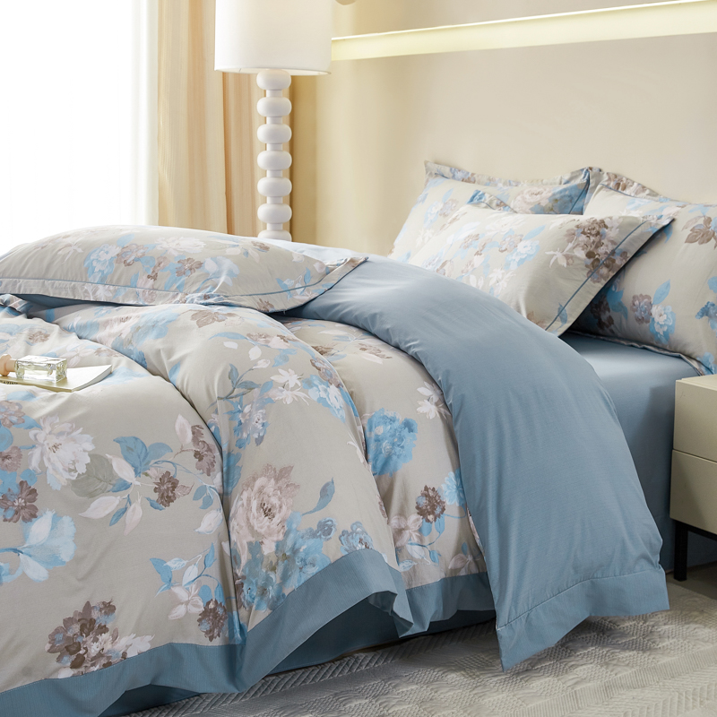 漫仙阁家纺 2026新款宽边四件套 蓝影清荷