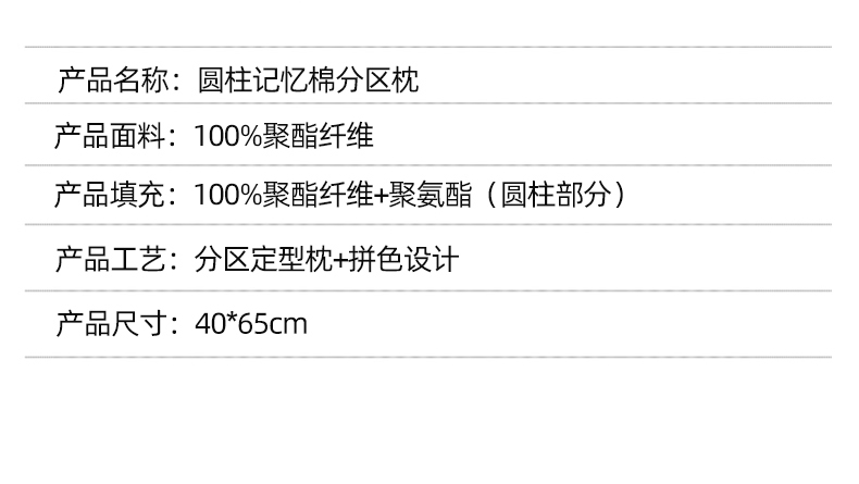 商品名称:(总)九州枕芯 2026新款圆柱记忆棉分区枕枕头枕芯