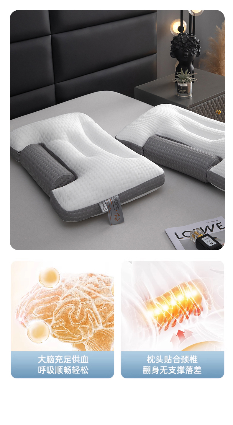 (总)九州枕芯 2025新款肩颈释压倍暖枕,米色,灰色