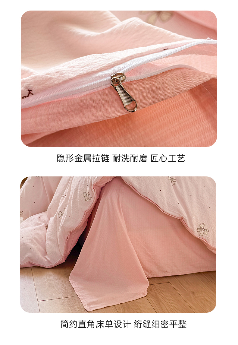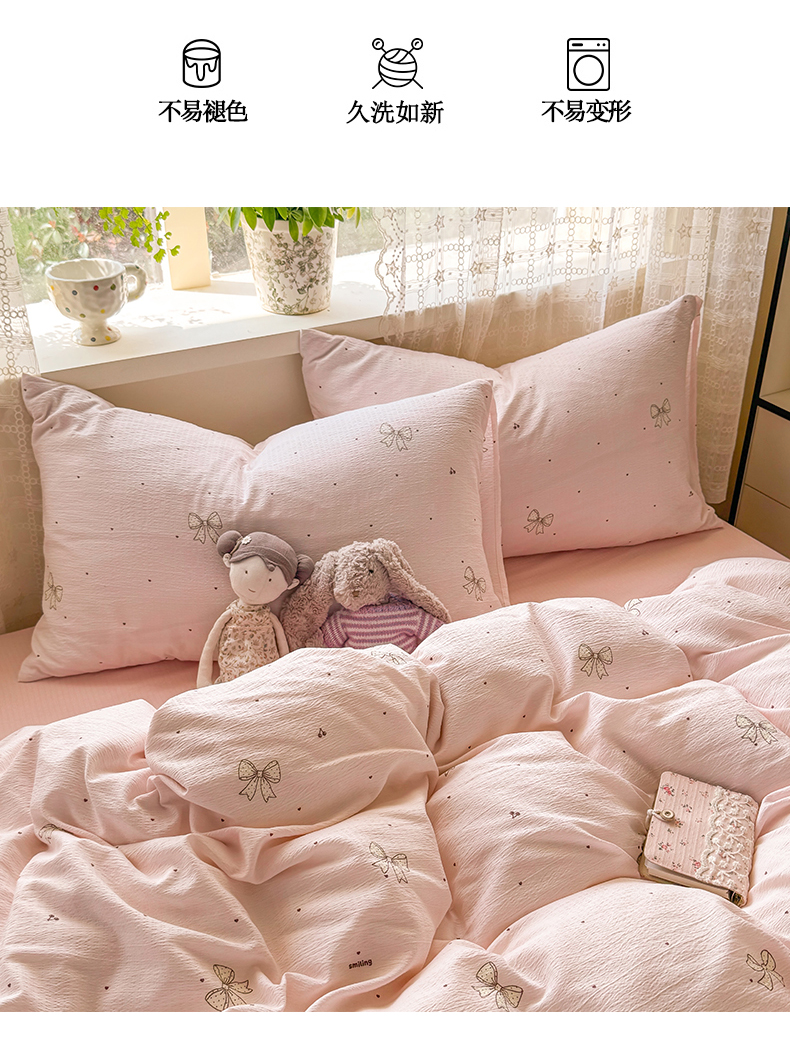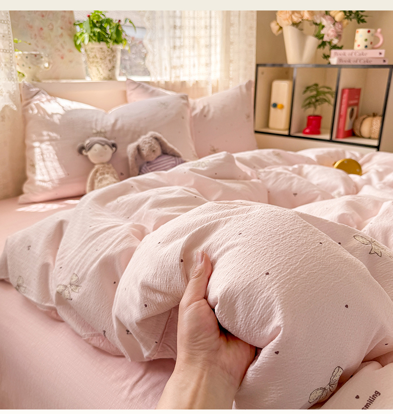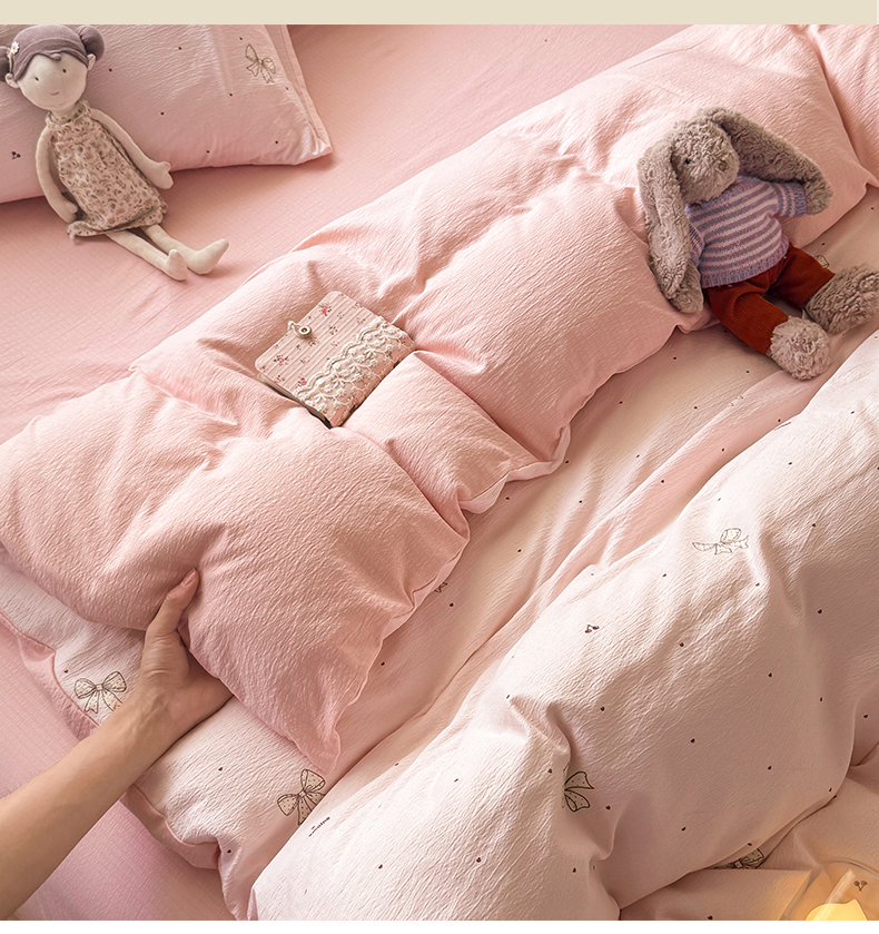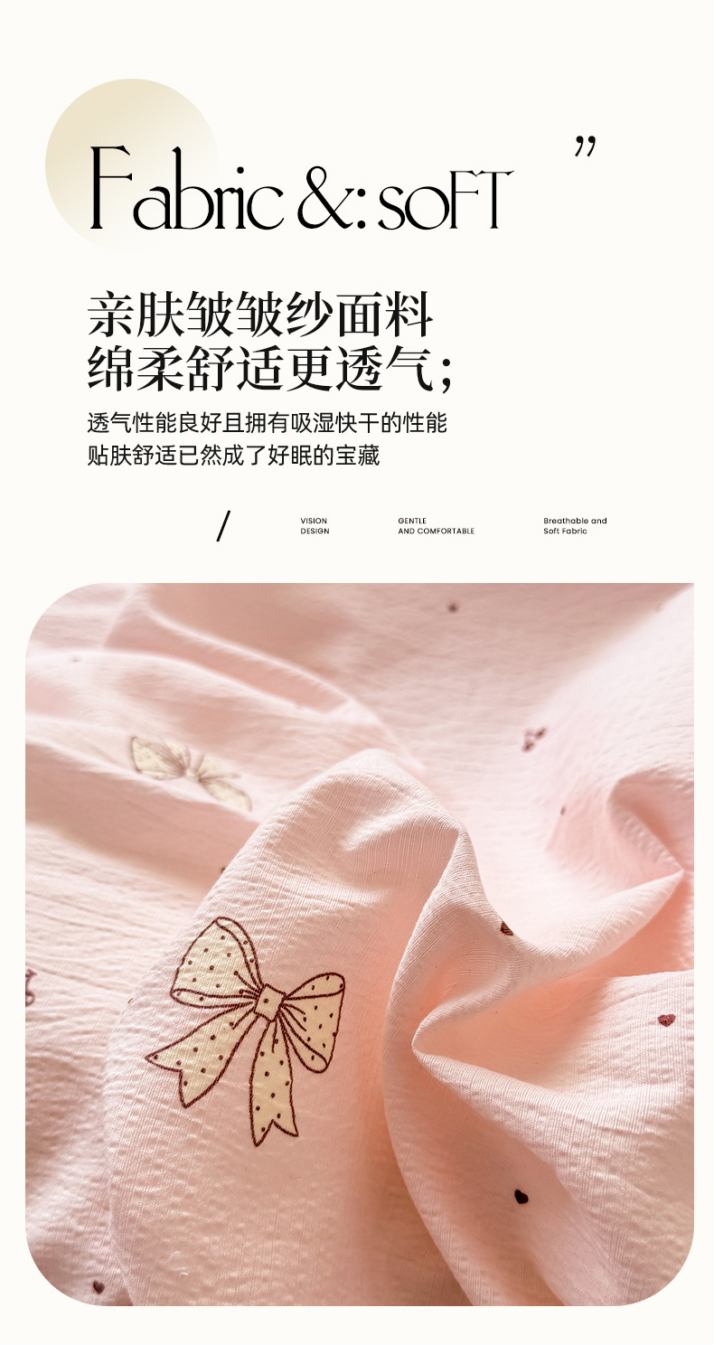 当前位置: 91家纺网 > 商品网购 > 床品套件 > 四件套 > 其它四件套 > 丝芙妮家居 2026春夏新款皱皱棉双层纱泡芙棉四件套 云蝶-粉