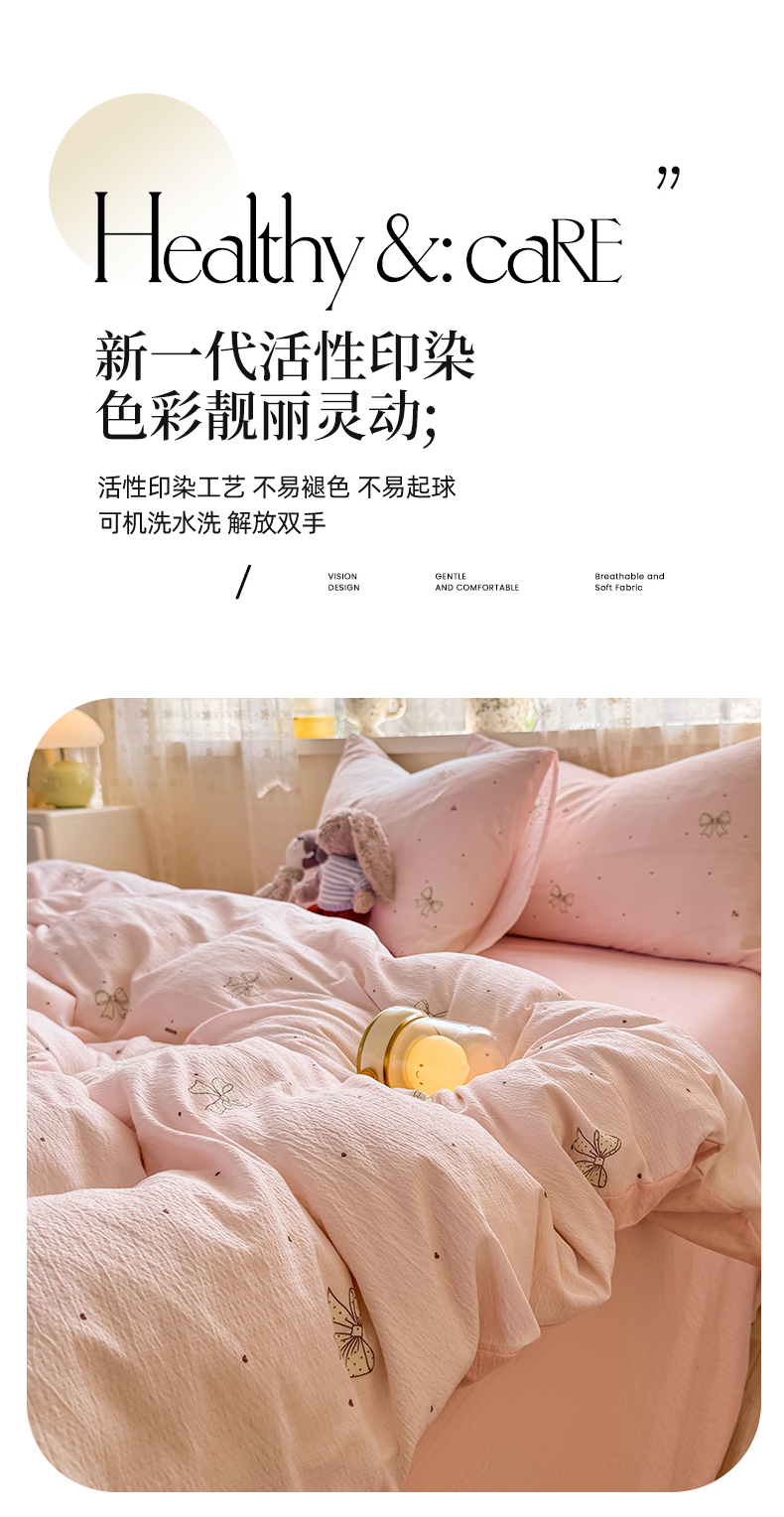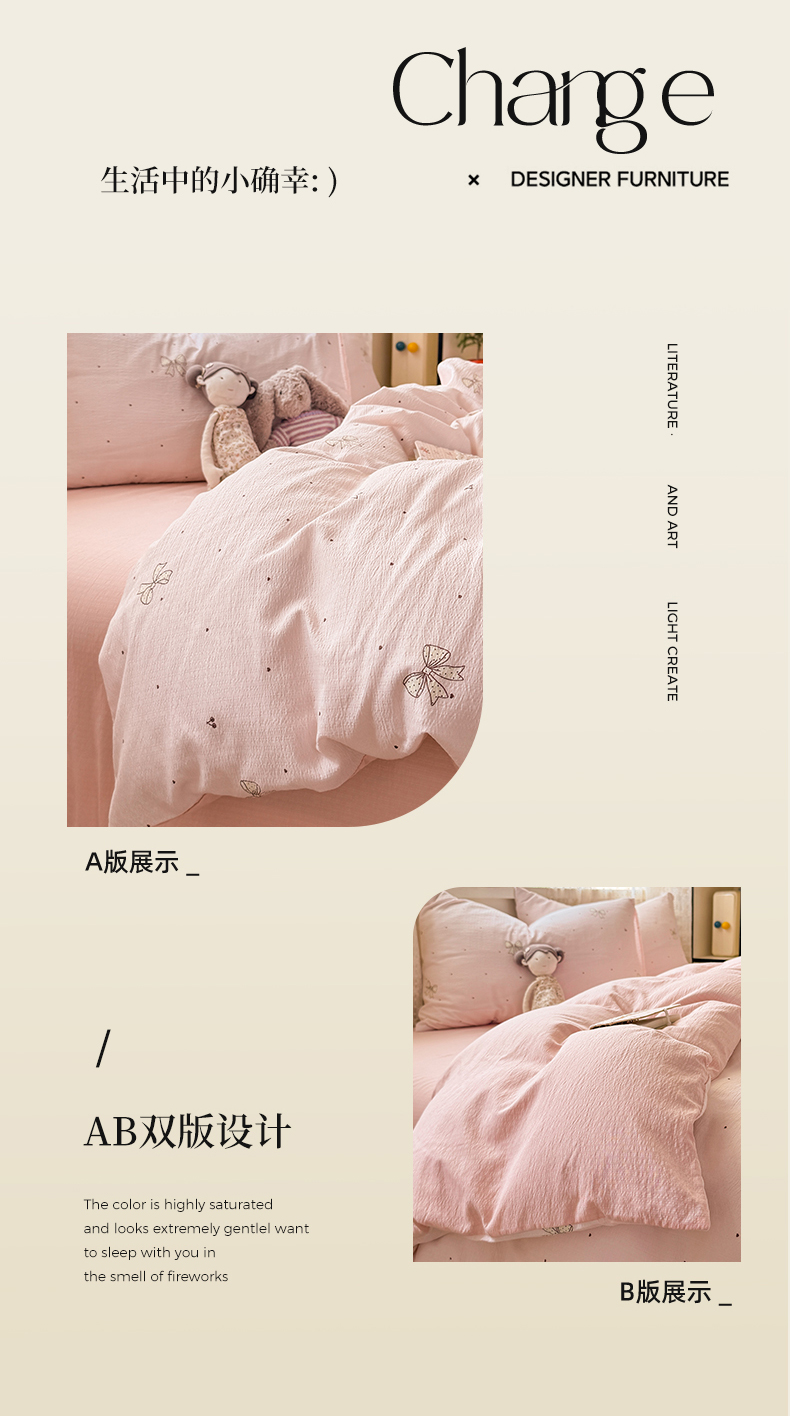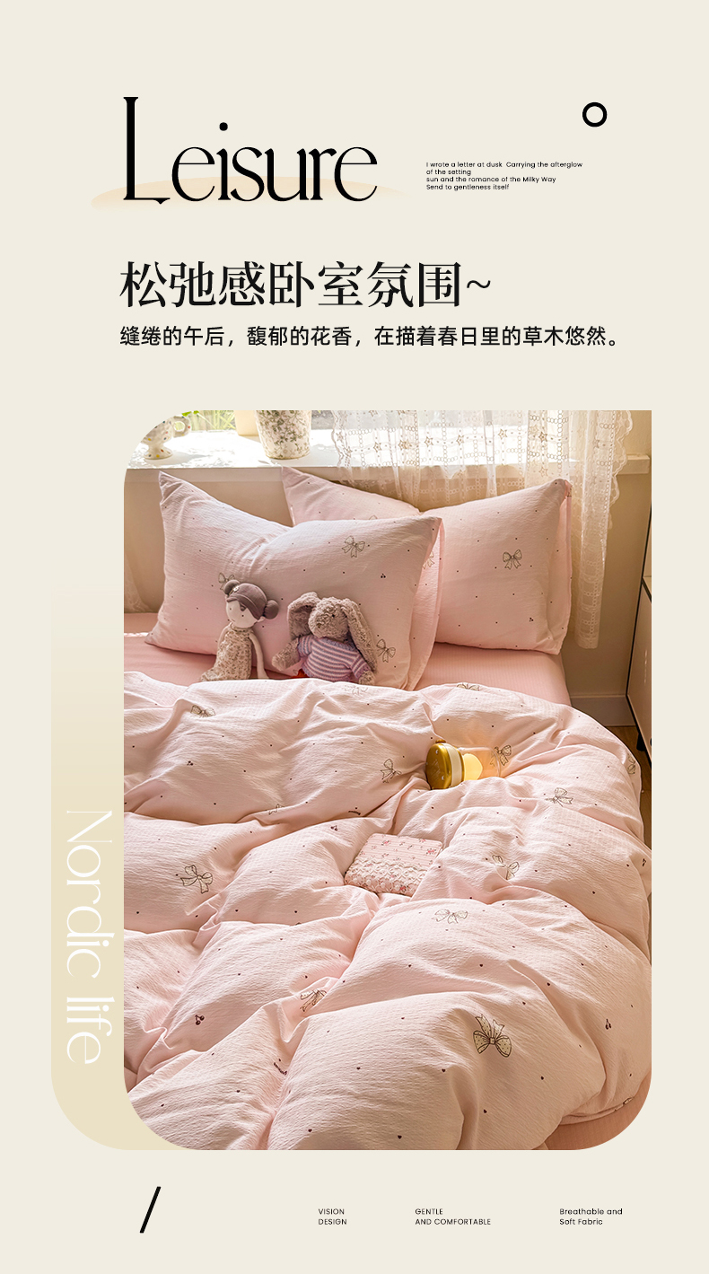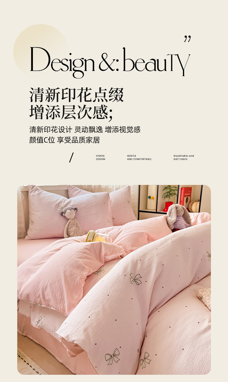 当前位置: 91家纺网 > 商品网购 > 床品套件 > 四件套 > 其它四件套 > 丝芙妮家居 2026春夏新款皱皱棉双层纱泡芙棉四件套 云蝶-粉