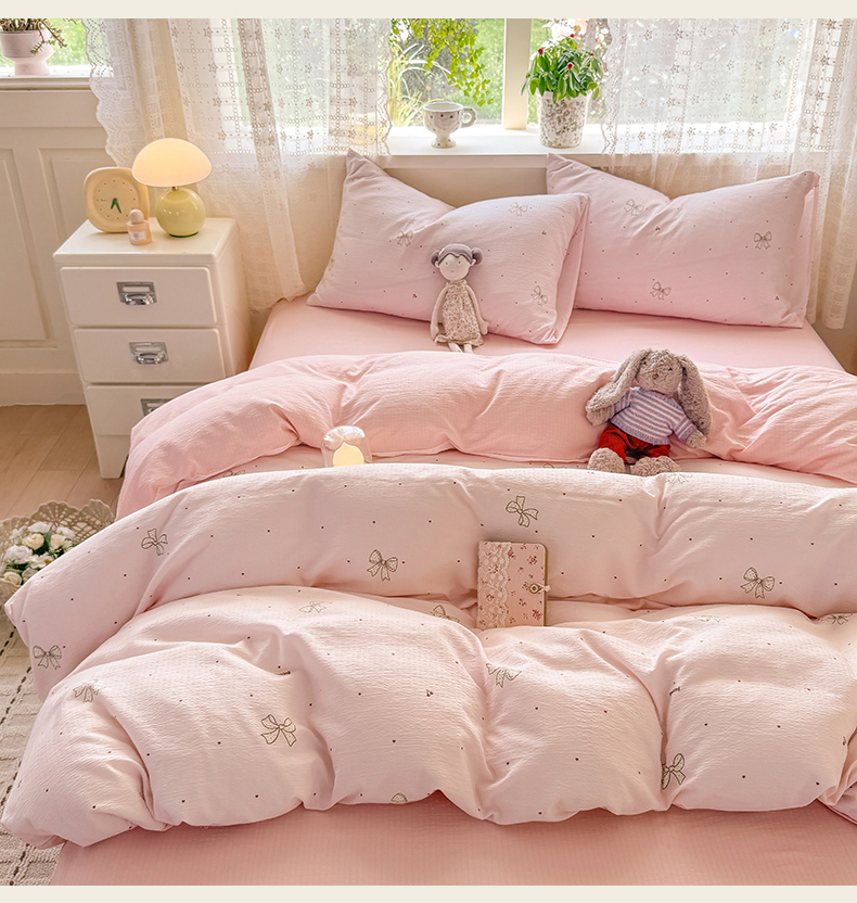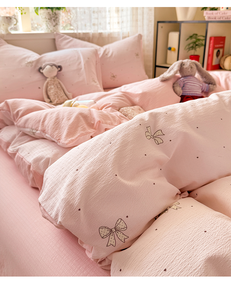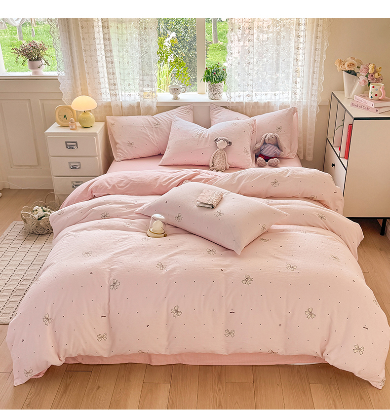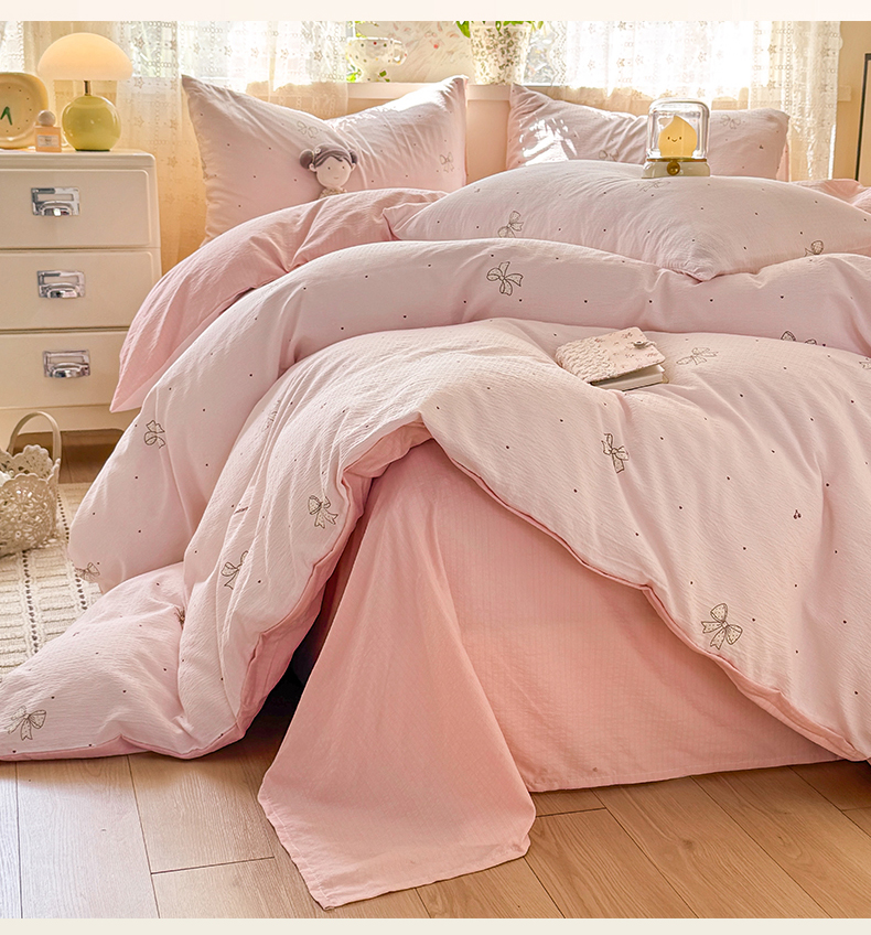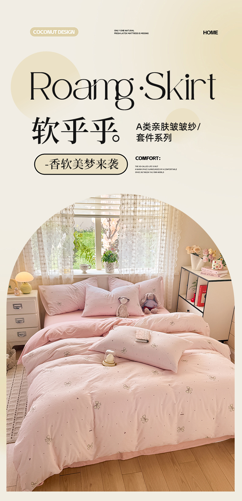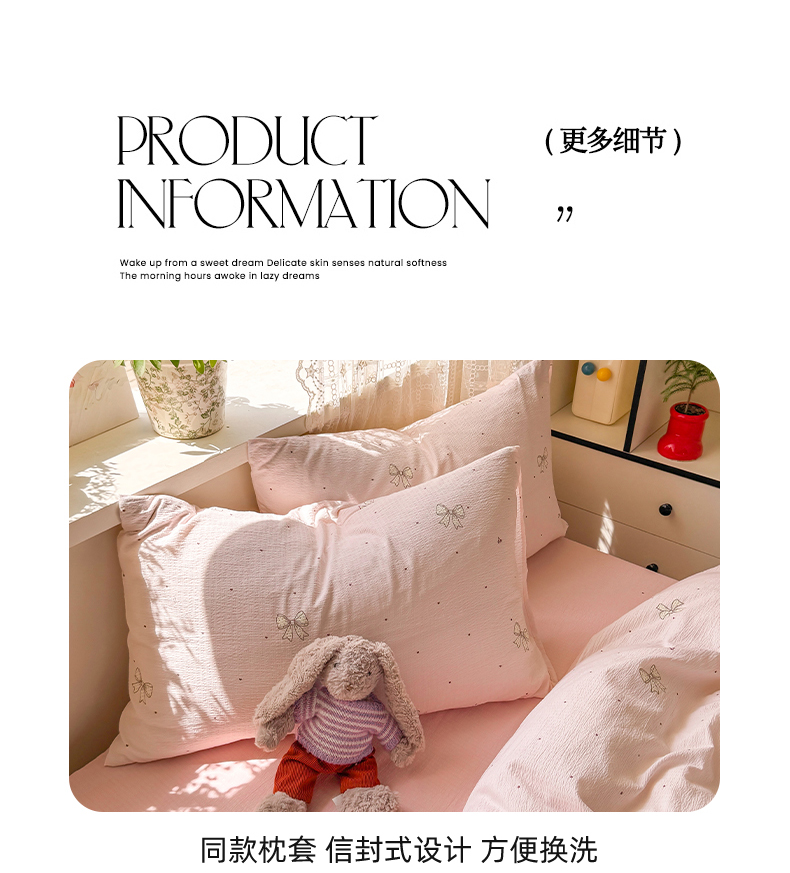 当前位置: 91家纺网 > 商品网购 > 床品套件 > 四件套 > 其它四件套 > 丝芙妮家居 2026春夏新款皱皱棉双层纱泡芙棉四件套 云蝶-粉