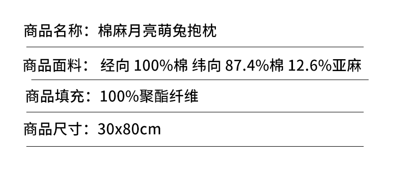 商品名称:蔻眠 多功能月亮兔棉麻大抱枕靠枕卡通枕芯异形枕头 主图