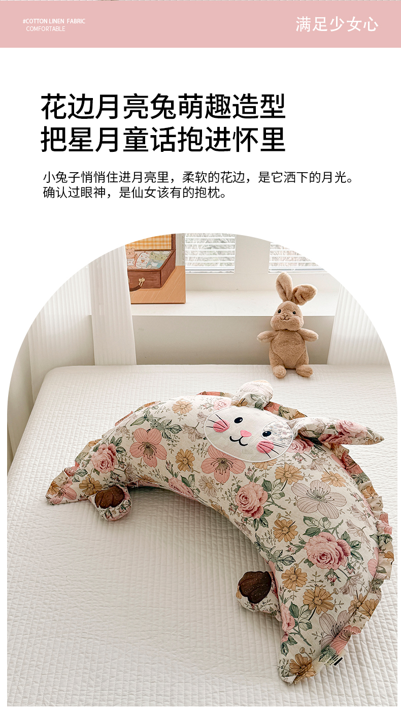蔻眠 多功能月亮兔棉麻大抱枕靠枕卡通枕芯异形枕头 主图