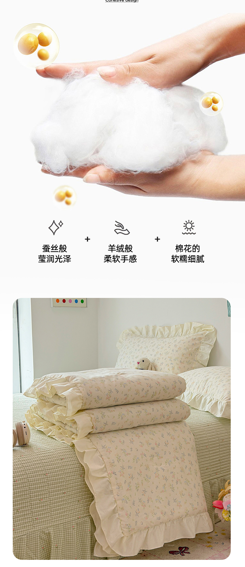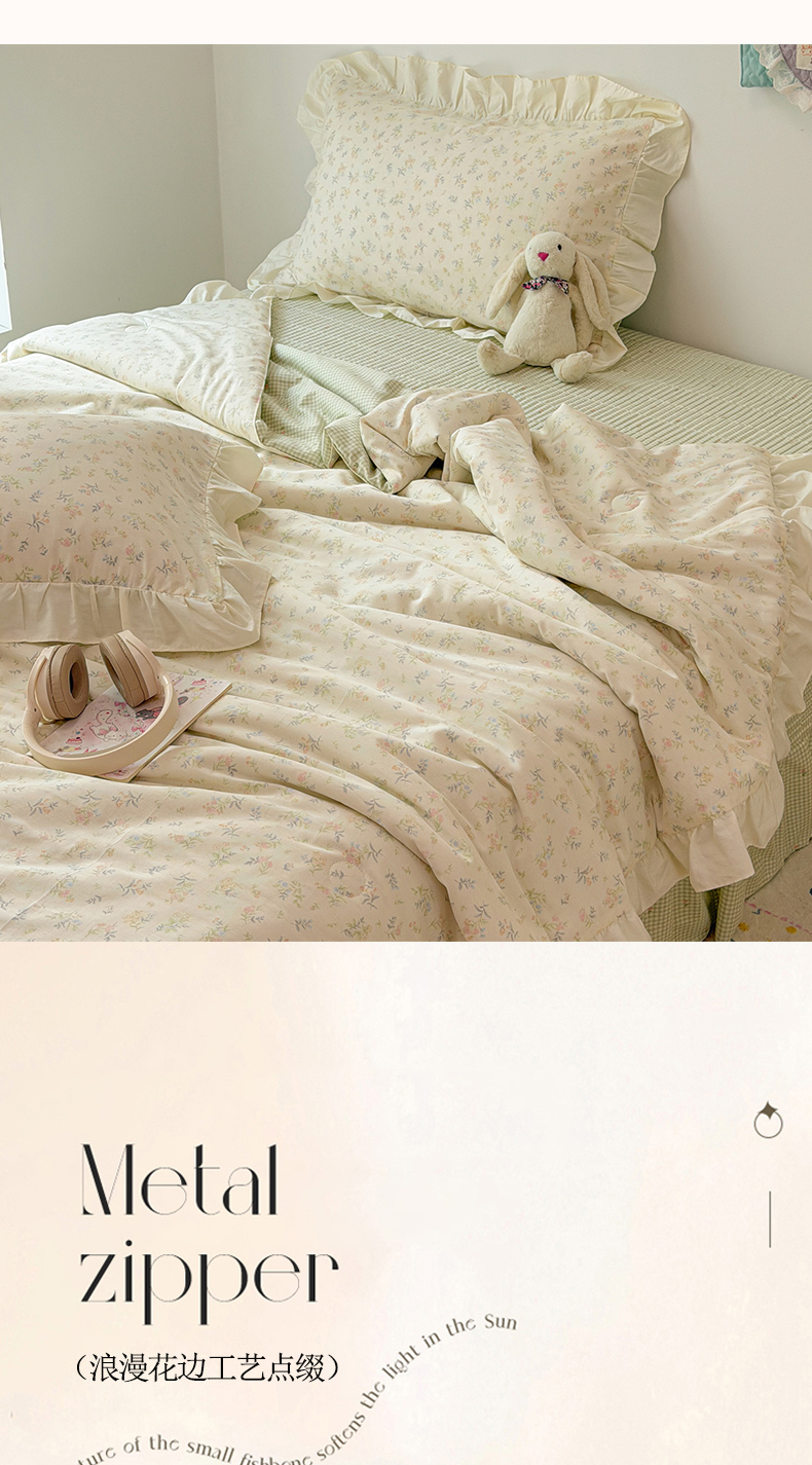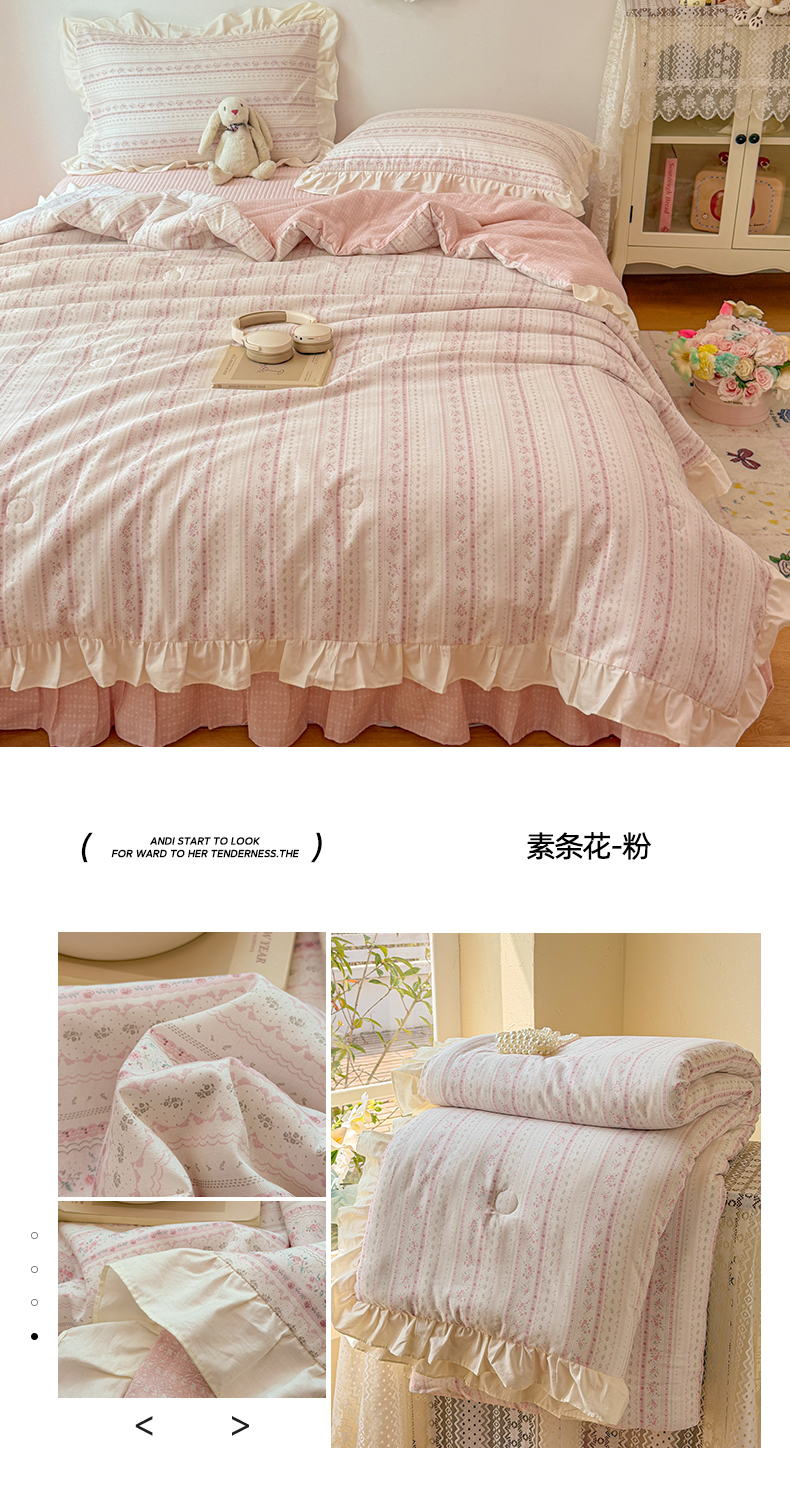• 91家纺网 家纺一手货源 找家纺 女子家纺 2026新款全棉花边夏被全棉床盖夏被四件套 晚棠枝语