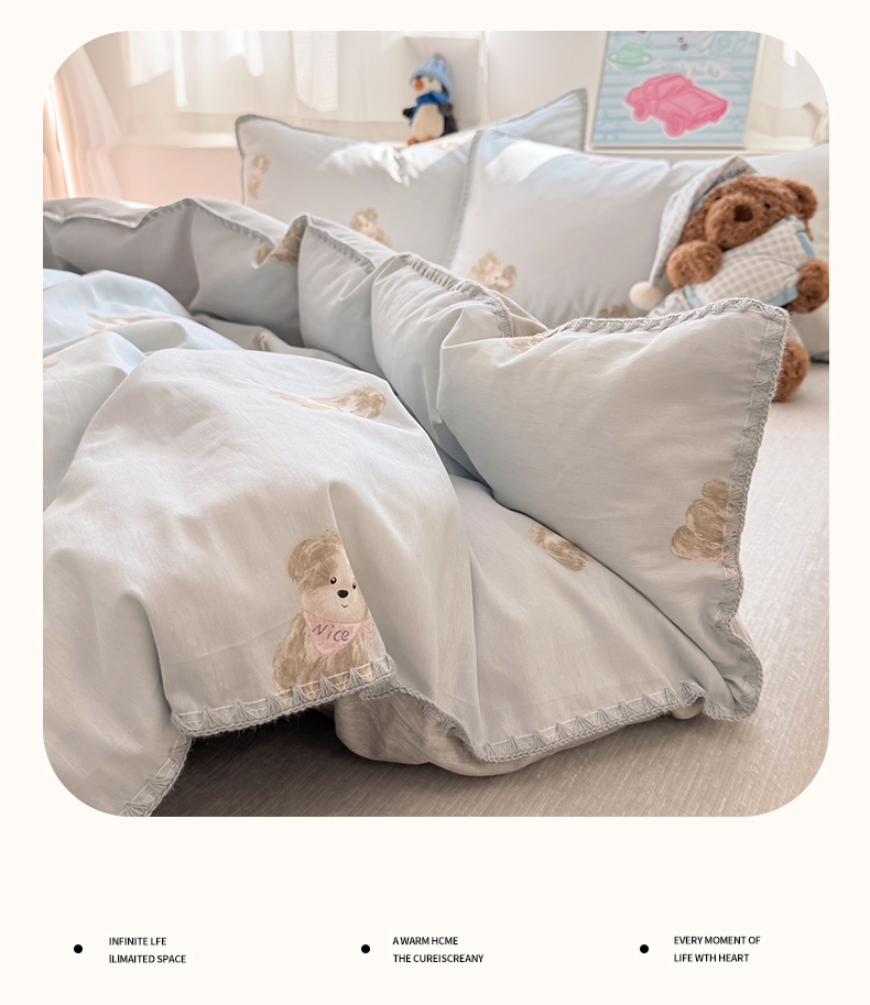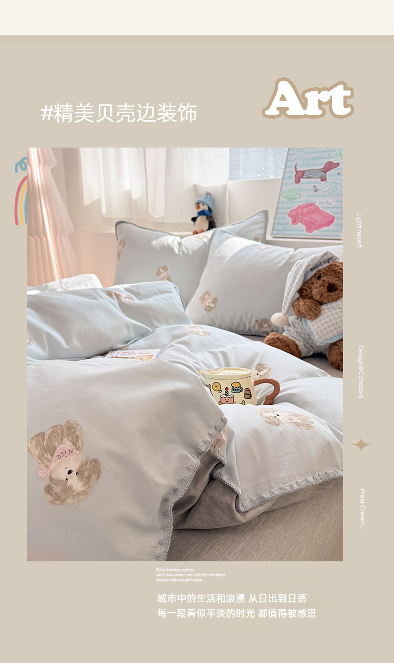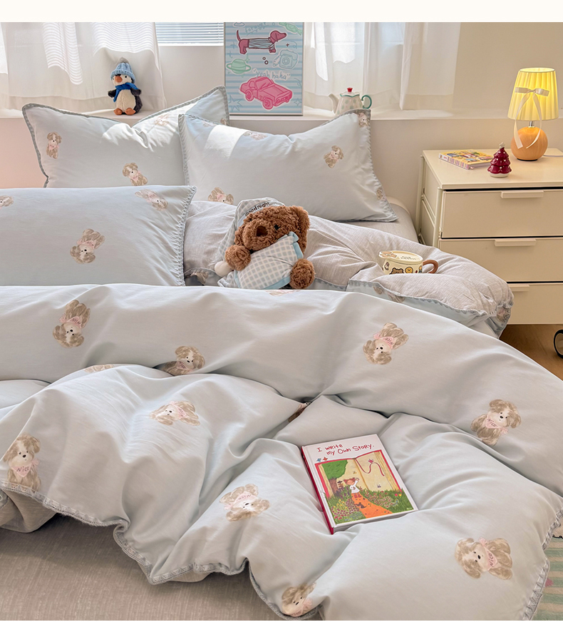 当前位置: 91家纺网 > 商品网购 > 床品套件 > 四件套 > 全棉普通四件套 > 女子家纺 2026新款贝壳边三角针12868全棉纯棉四件套 Nice狗狗-兰