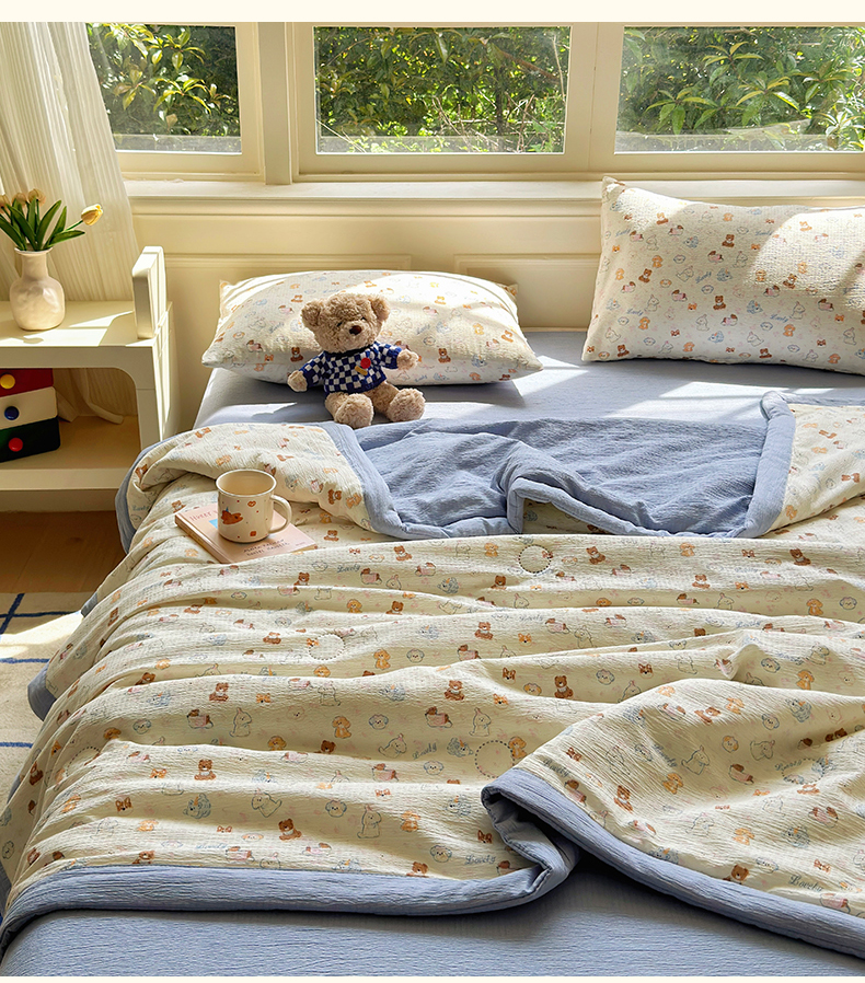 (总)几禾 2026新款A类云感双层纱夏被木棉皱皱纱棉花被小清新印花夏被夏凉被费尔岛空调被,奔跑猫,蛋糕派,可可小狗,蓝枝,猫趣,抹茶小猫,嫩芽,泡芙狗,软萌狗,狮子派对,兔子乐队,顽皮熊粉,顽皮熊蓝,挽歌,摘星