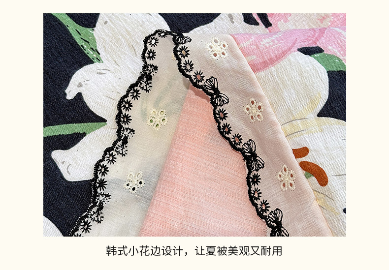 花伞家居 2026新款蕾丝花边皱皱双层纱夏被四件套含买家秀 夏被-盛开粉