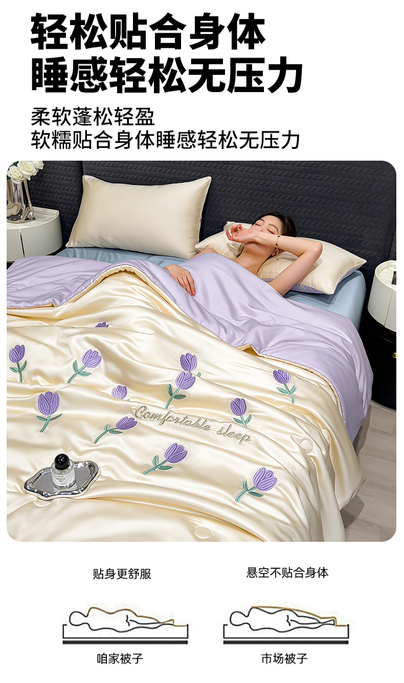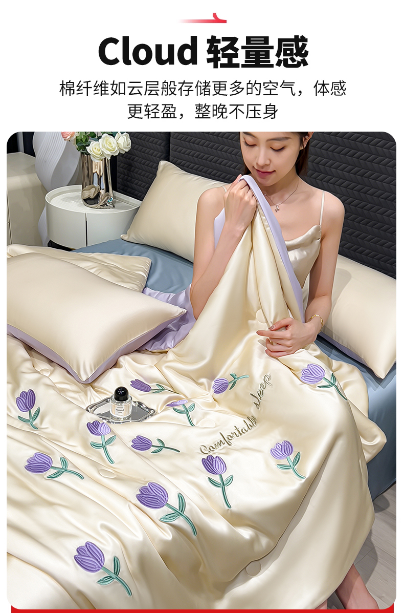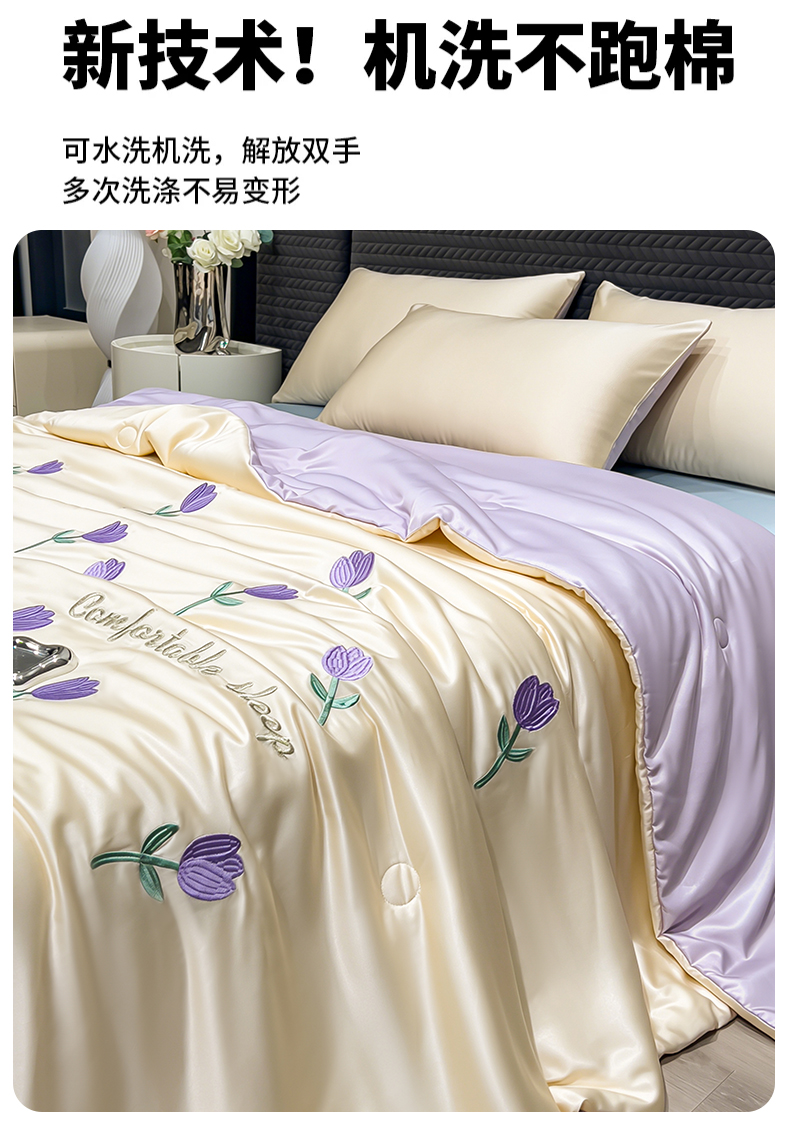 • 91家纺网 家纺一手货源 找家纺 爱彼家纺 2026夏季新款水洗冰丝轻奢刺绣凉感夏被夏凉被空调被 花朵-奶白紫 91家纺网 家纺一手货源 找家纺 爱彼家纺 2026夏季新款水洗冰丝轻奢刺绣凉感夏被夏凉被空调被 花朵-奶白紫
