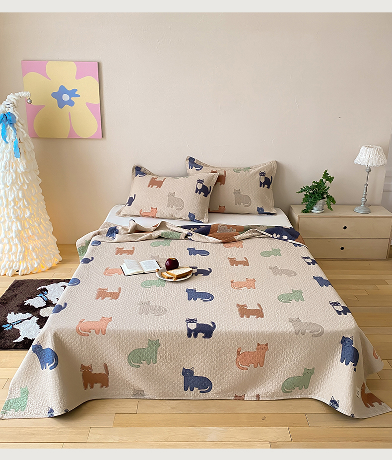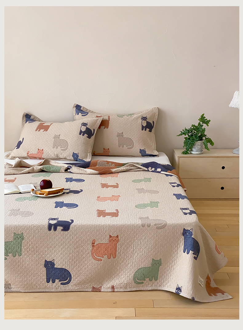(总)麻依 2026新款软萌纱布床盖三件套系列,斑点小猫,博美,豆豆企鹅,懒床小狗,乐园小象,毛绒小狗,胖胖猫,胖胖企鹅,桃心KT,玩耍小咪,香蕉小猫,杂技萌宠,组合