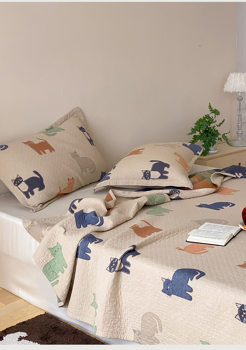 (总)麻依 2026新款软萌纱布床盖三件套系列,斑点小猫,博美,豆豆企鹅,懒床小狗,乐园小象,毛绒小狗,胖胖猫,胖胖企鹅,桃心KT,玩耍小咪,香蕉小猫,杂技萌宠,组合