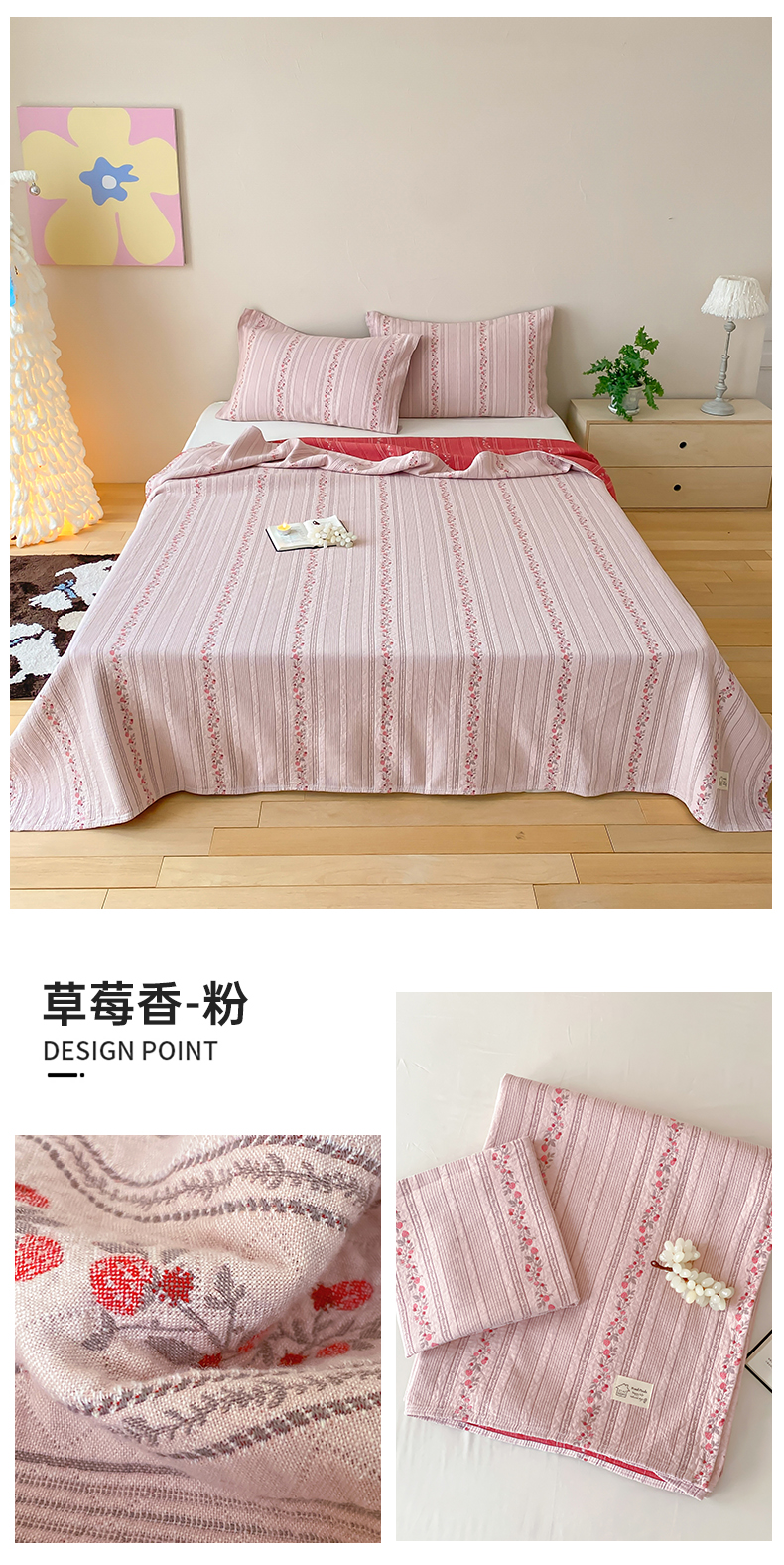商品名称:麻依 2026新款安心棉床盖三件全棉四层纱布床单 小香樱桃-红