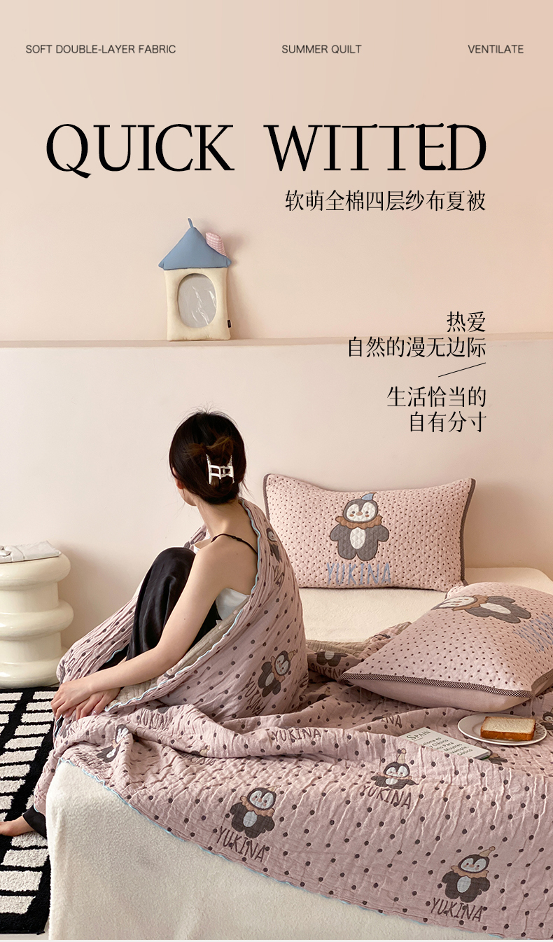 (总)麻依 2026新款软萌夏被全棉四层纱布,斑点小咪,波点企鹅,博美仔,懒床小狗,乐园小象,毛绒小狗,胖胖猫,胖胖企鹅,桃心KT,玩耍小咪,香蕉小猫,小黄人,欣欣木马,杂技萌宠,组合图