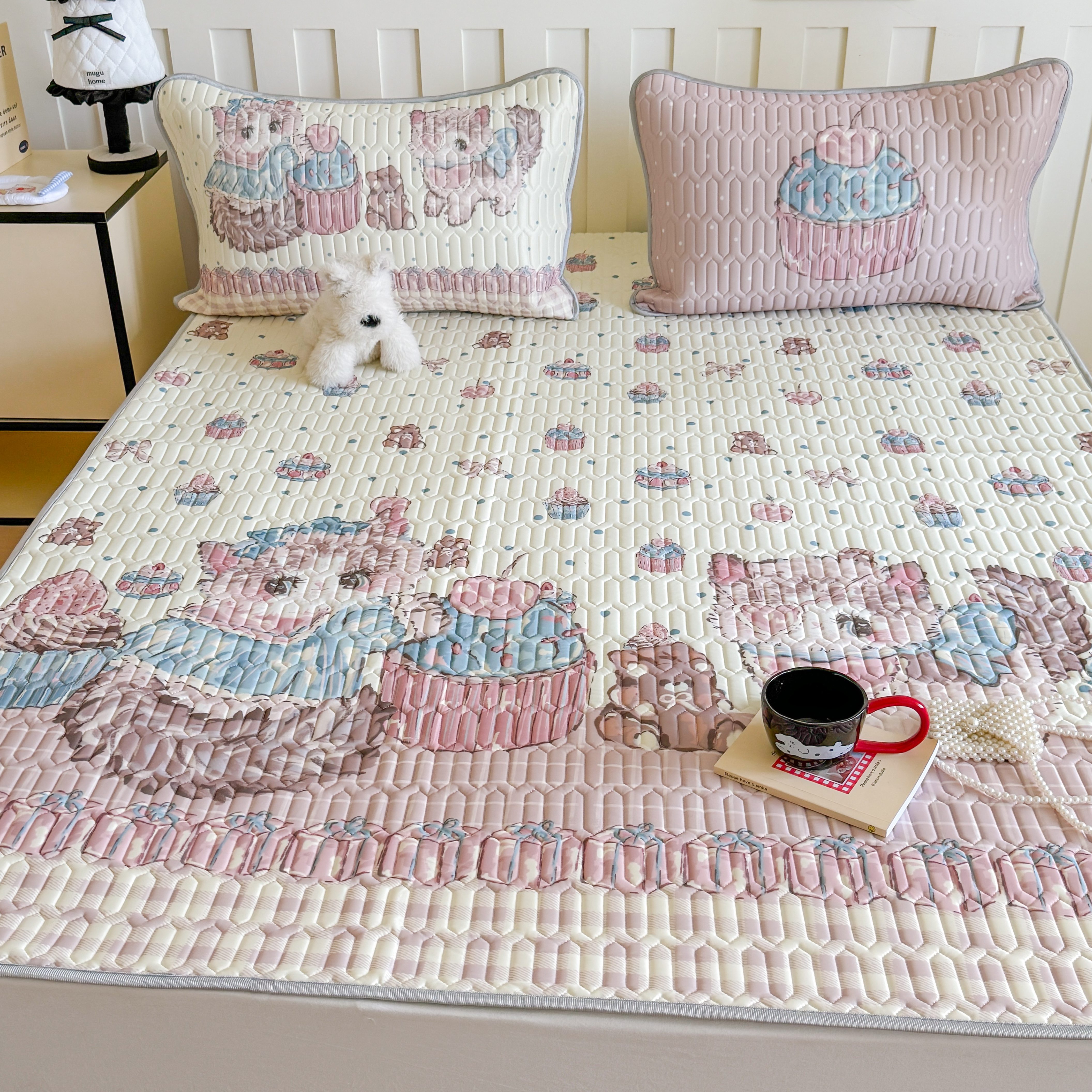 (总)顾里家纺 2026新款Pe凉感仿冰藤软席凉席三件套,滑板腊肠狗,苹果木马,苹果趴熊,甜圈小猫,香蕉熊,组合图仅供展示