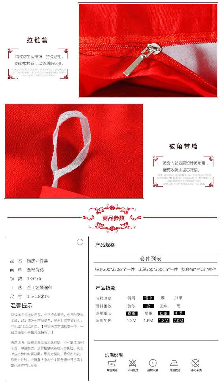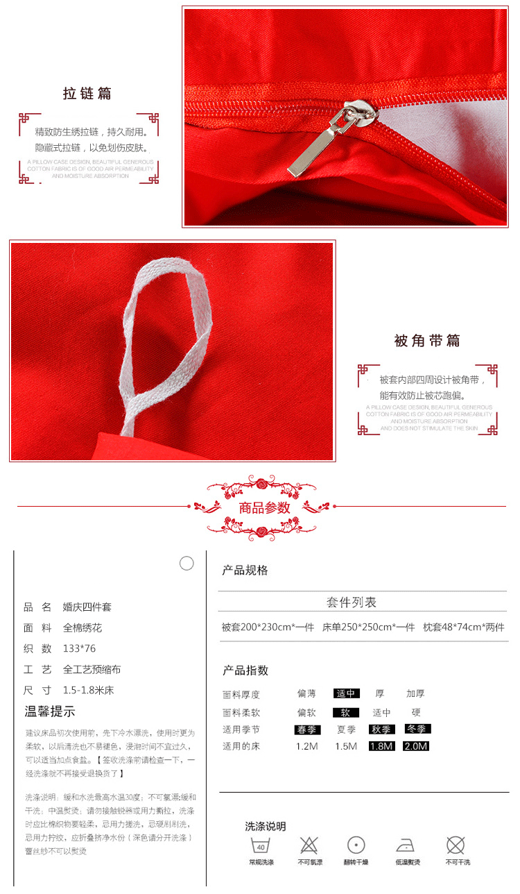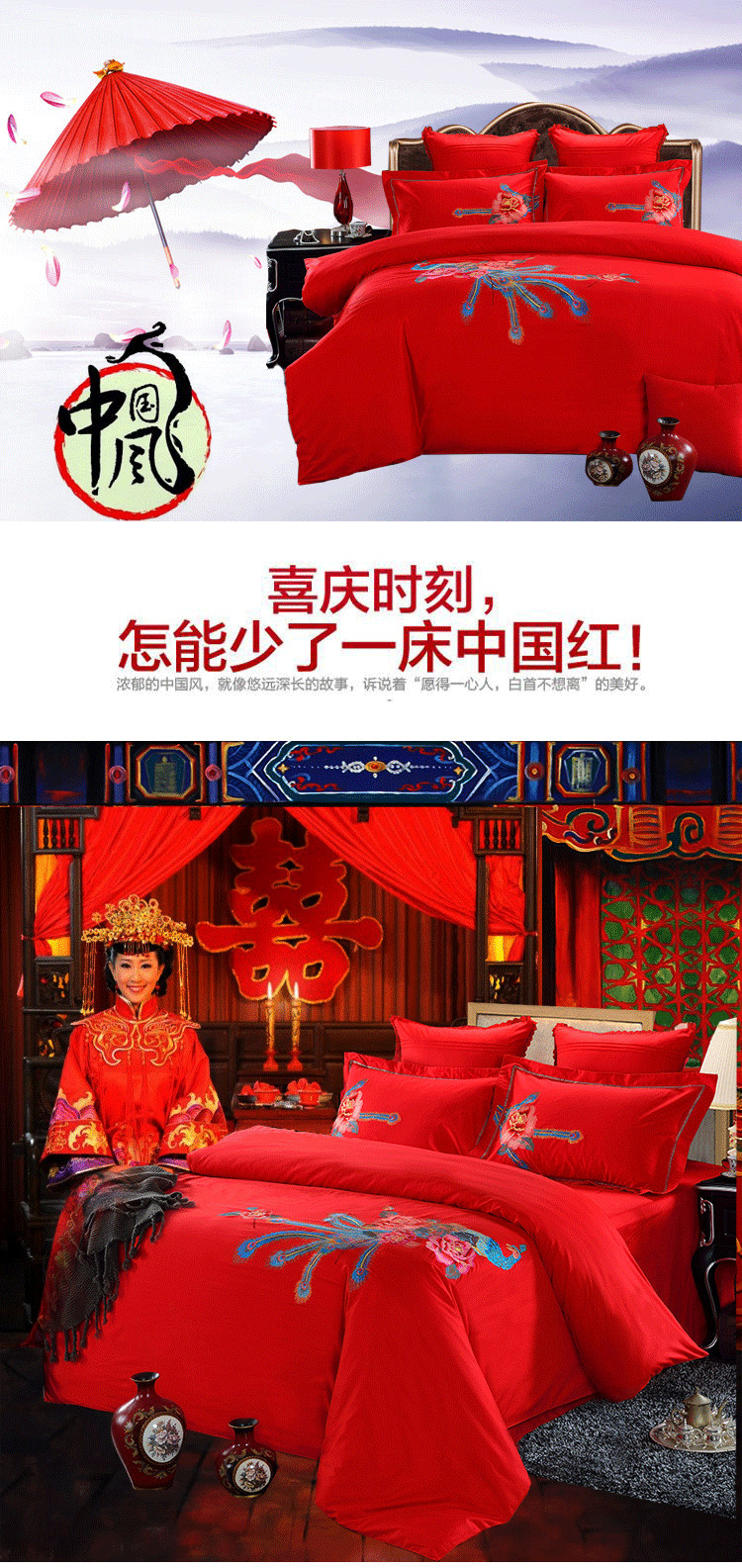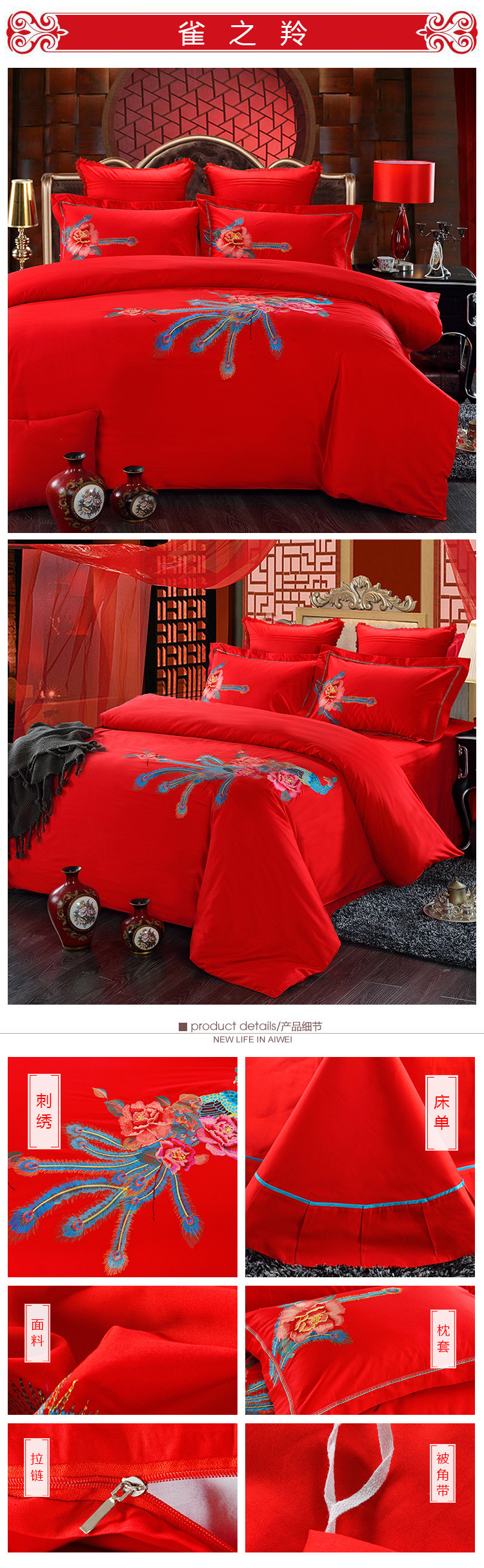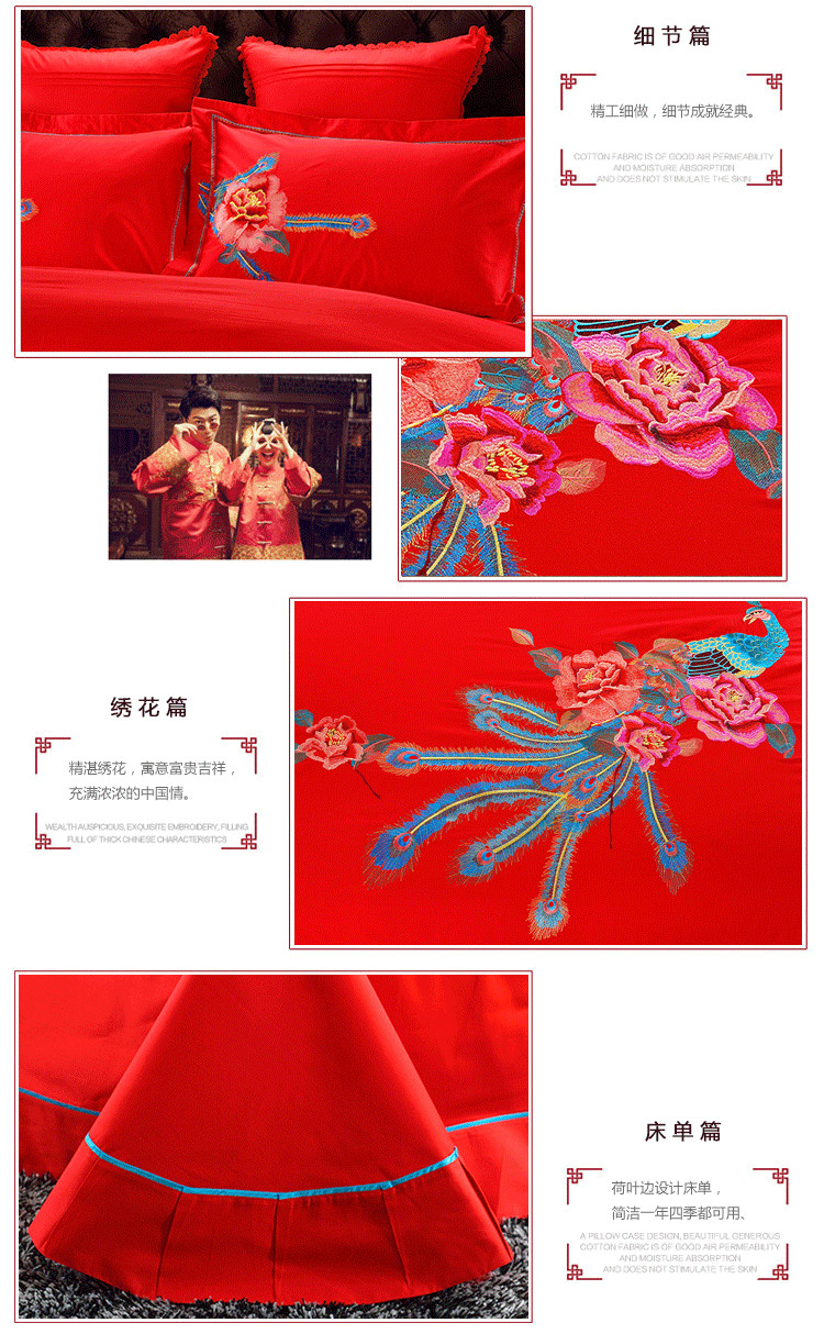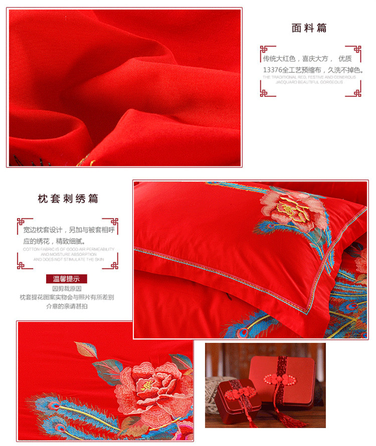 总玖玖爱家纺 新款轻奢风120支贡缎长绒棉高精密刺绣婚嫁系列四件套,欢喜人家,吉祥如意,金色婚典,情定一生,喜迎龙凤