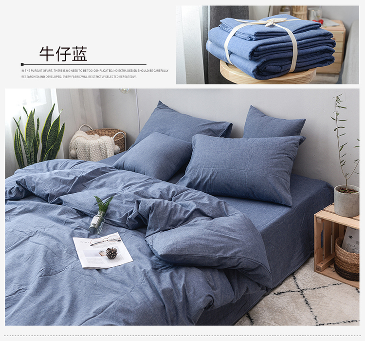 商品名称:柠萌家居 全棉色织水洗棉三件套四件套床笠款床单款 牛仔蓝