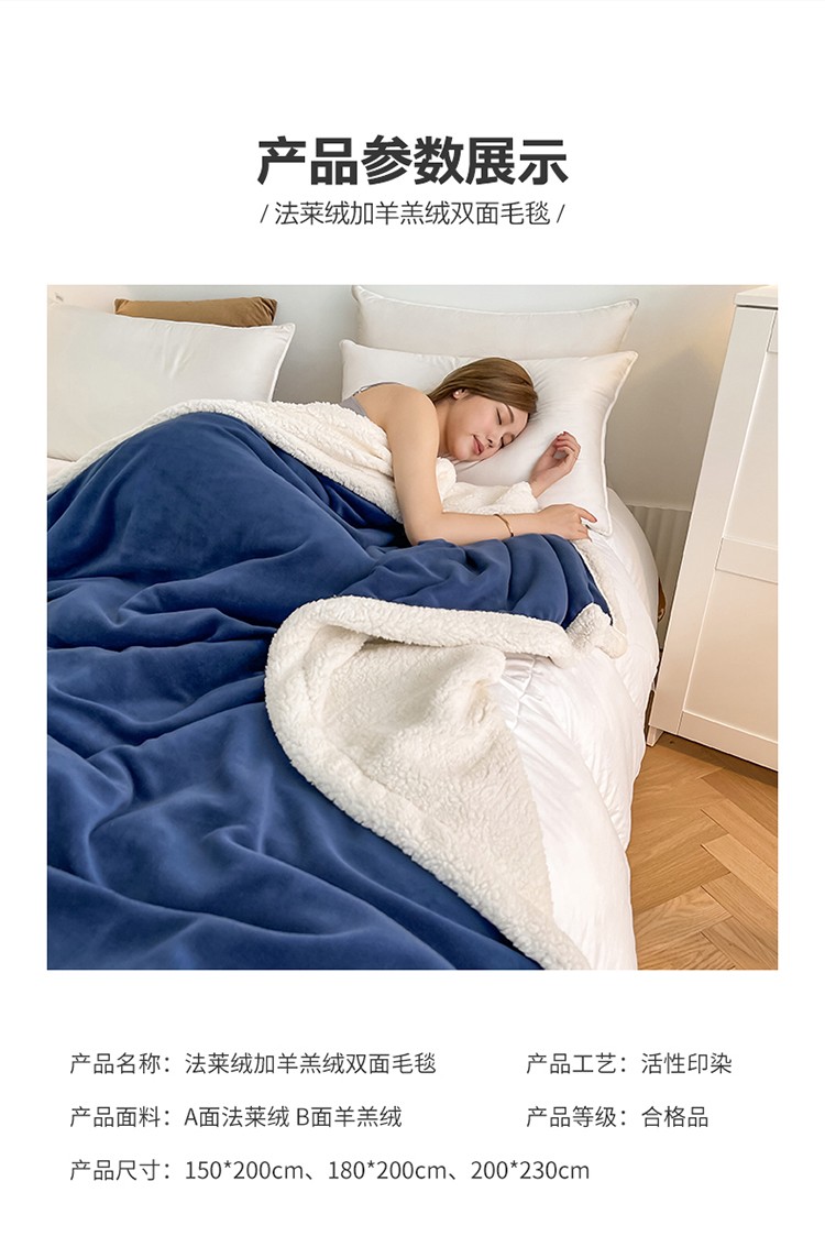 商品名称:双层羊羔绒+法兰绒毯冬季加厚毛毯珊瑚绒毯保暖毯子空调毯午睡毯