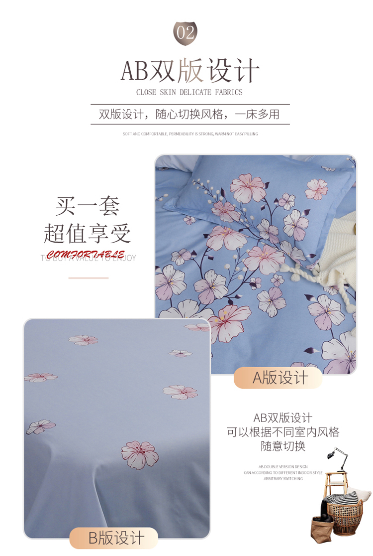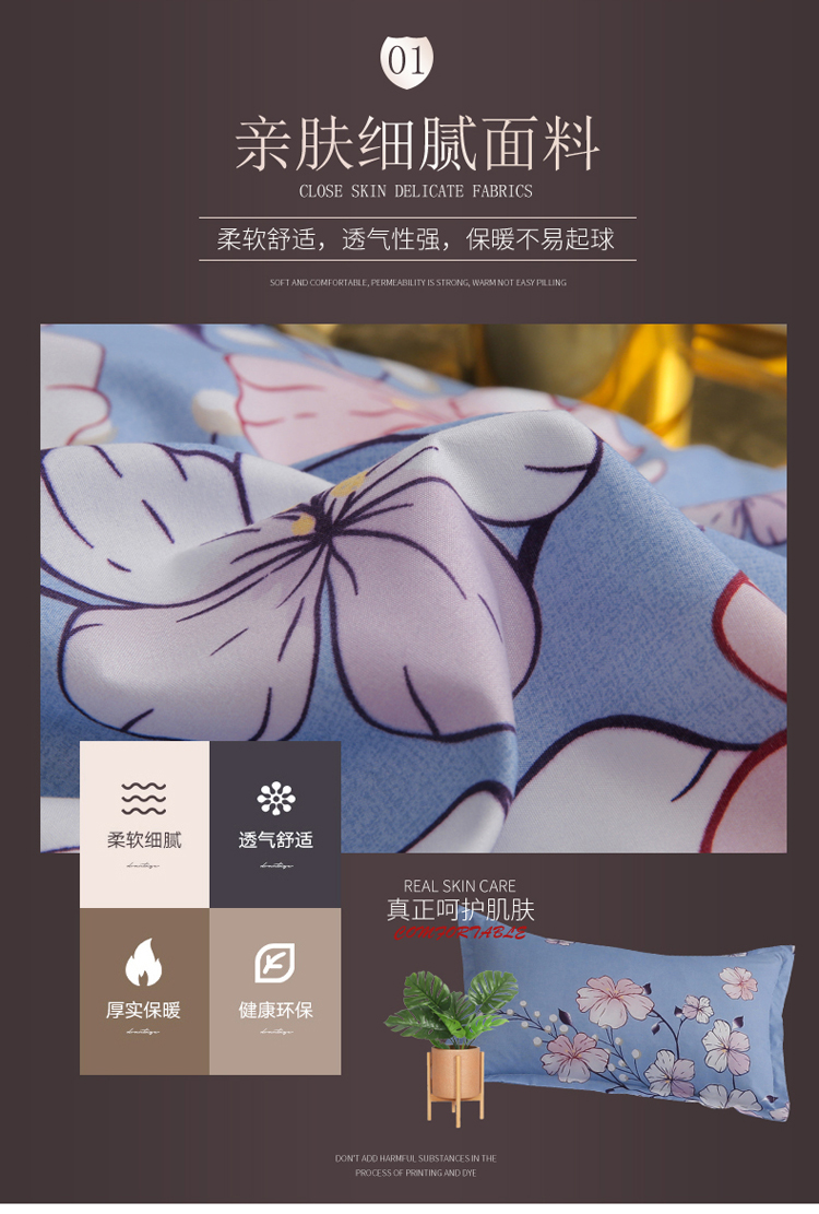 米粒家纺 2018新品芦荟棉四件套 花花世界
