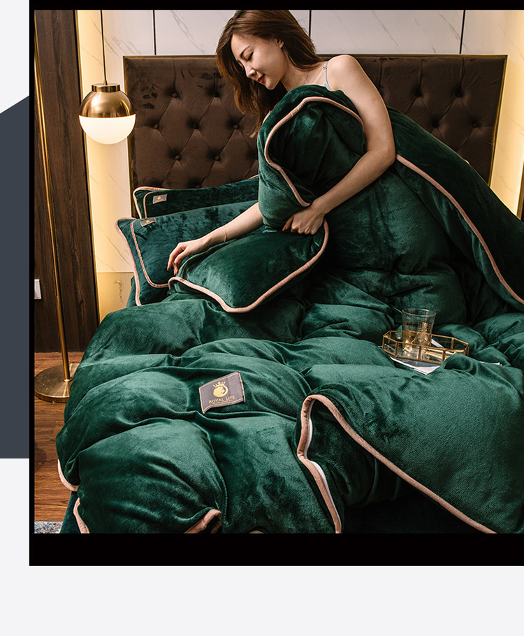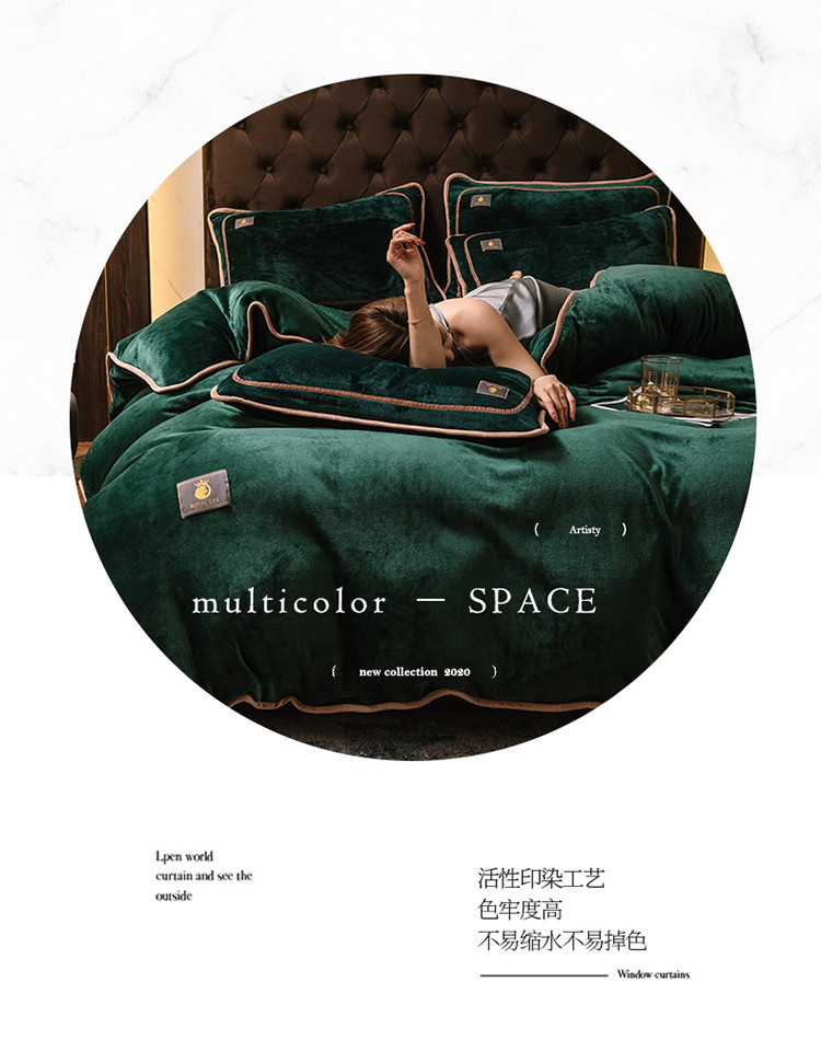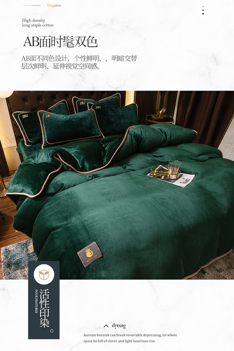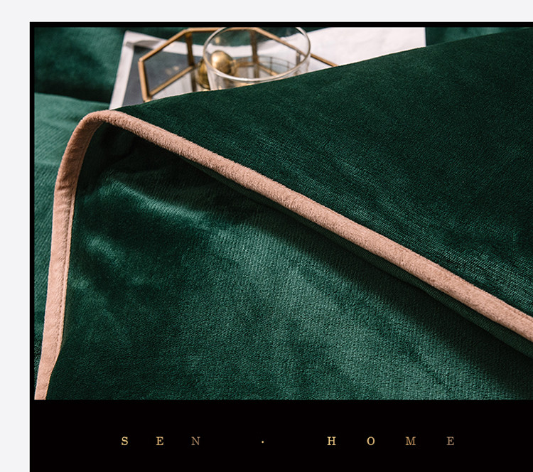 Y-DGN 2023秋冬纯色牛奶绒黑金系列四件套 玛瑙绿
