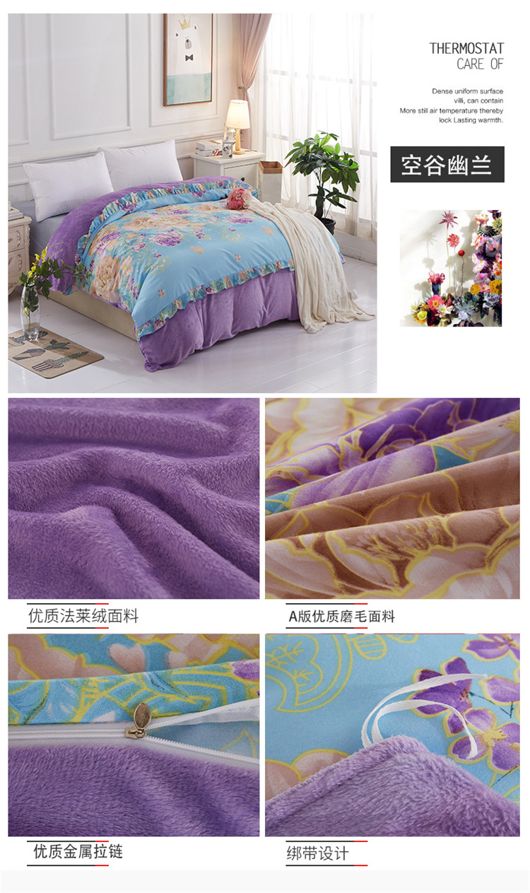 商品名称:铠畅 2019韩版法莱绒床裙单被套 空谷幽兰
