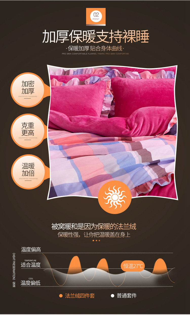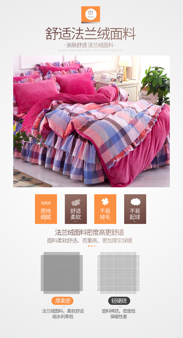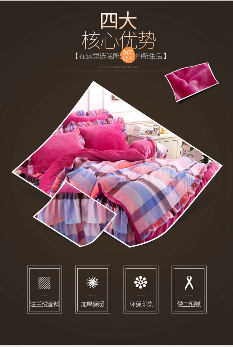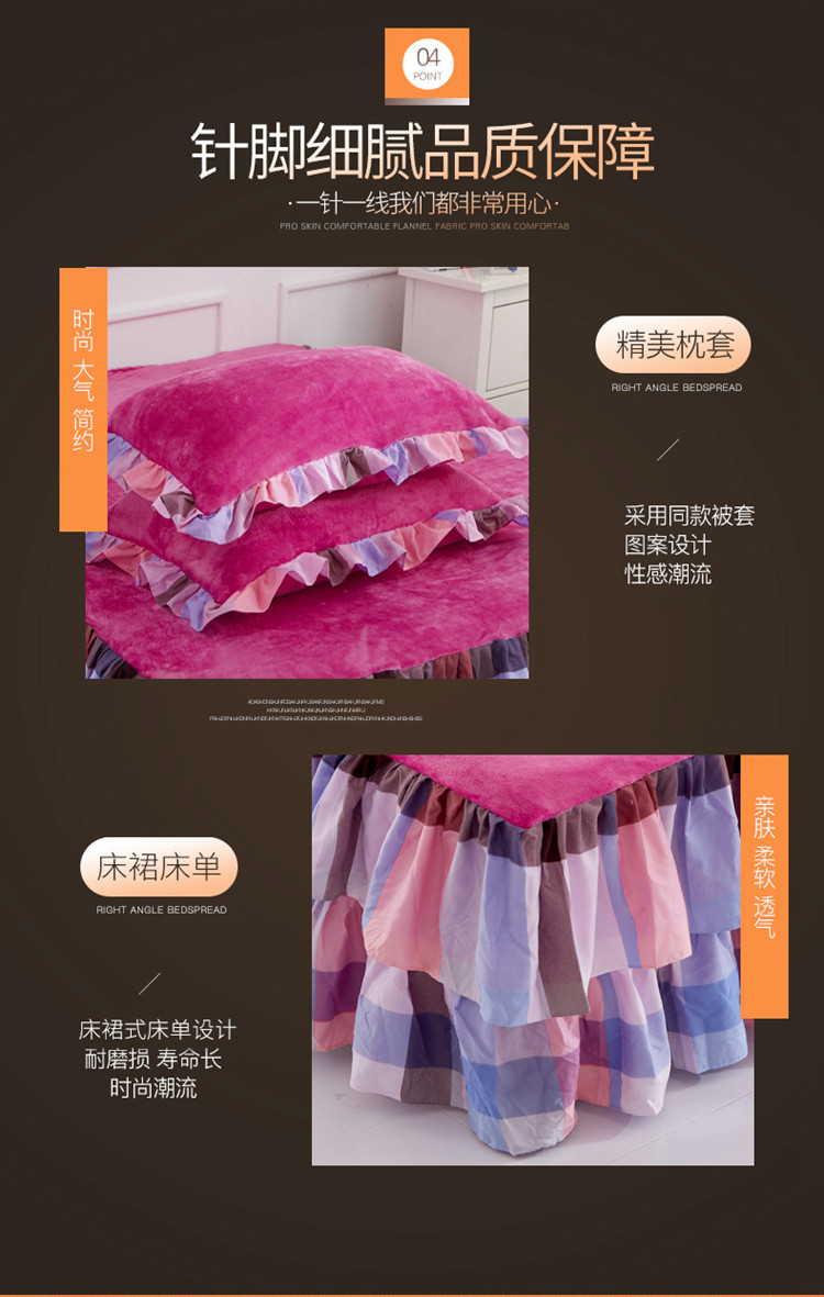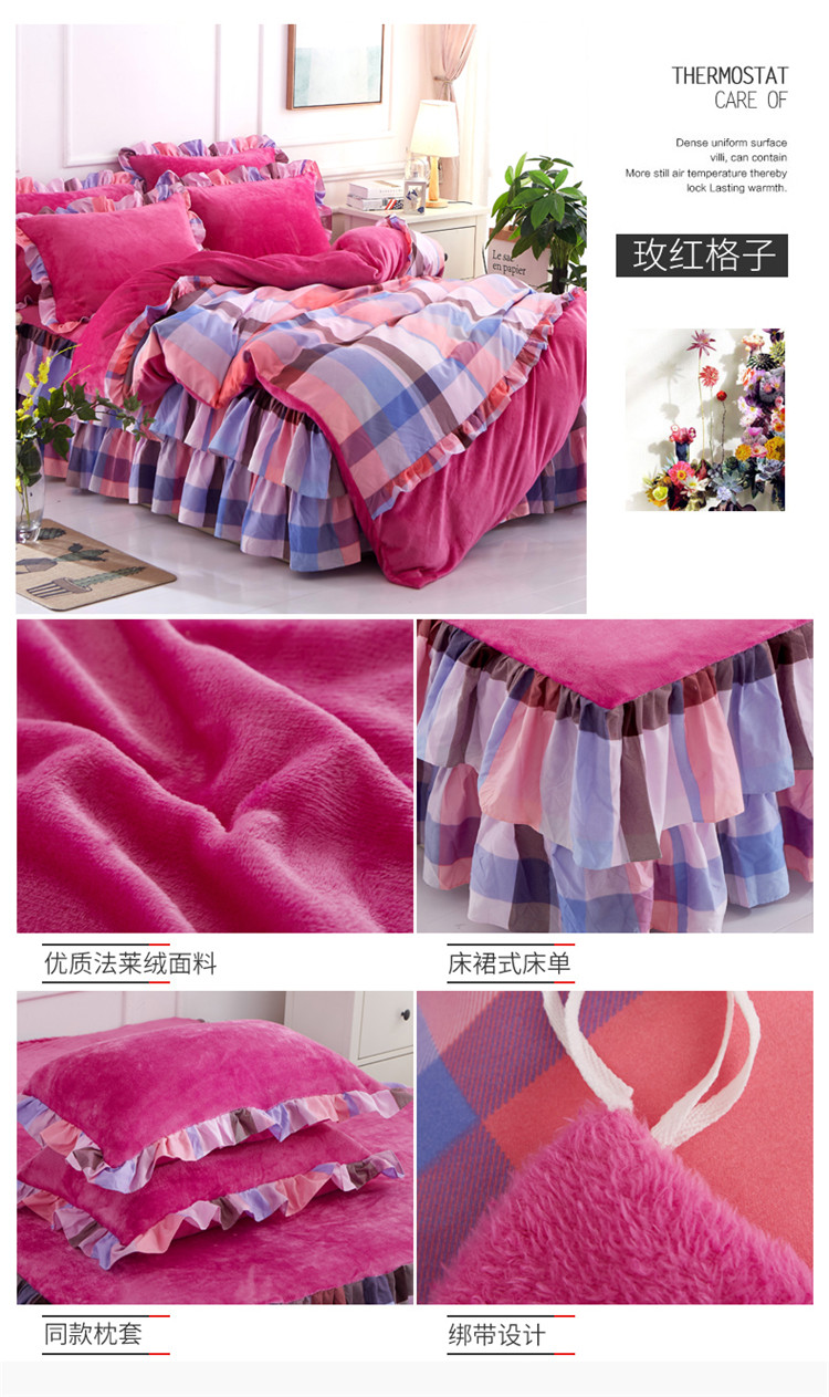 商品名称:铠畅 2019韩版法莱绒床裙四件套 玫红格调