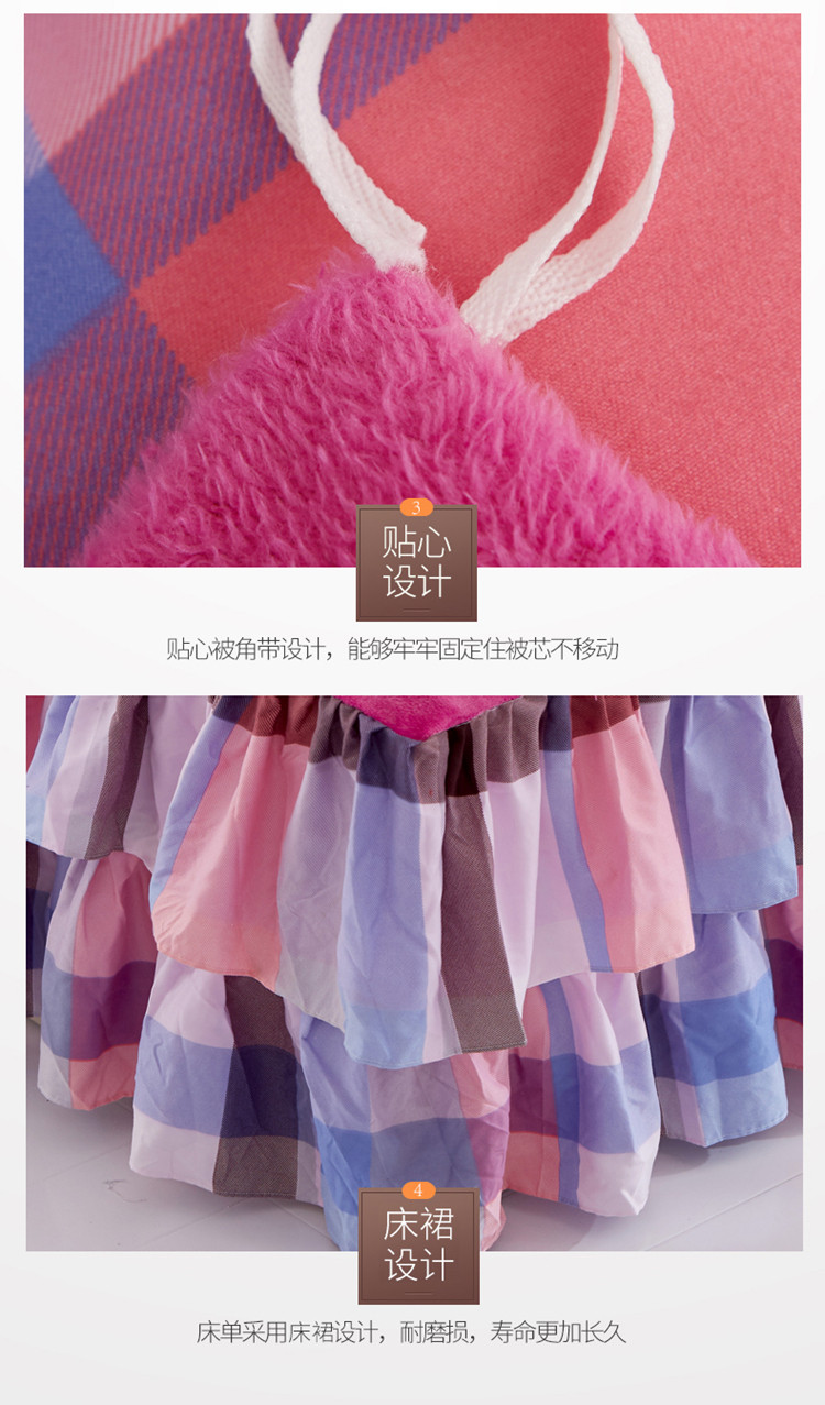 铠畅 2019韩版法莱绒床裙四件套 玫红格调