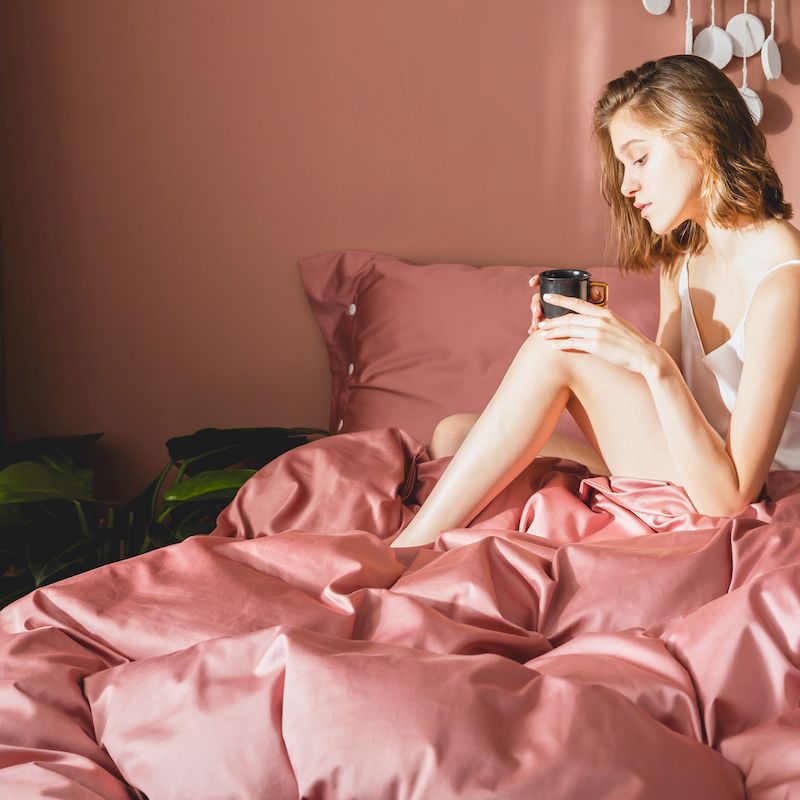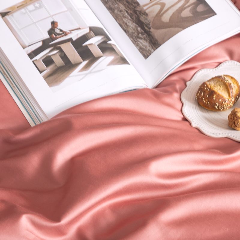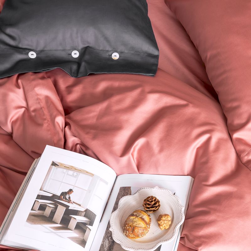 商品名称:涞澳家纺 2019新款60长绒棉平色简易四件套 颊红