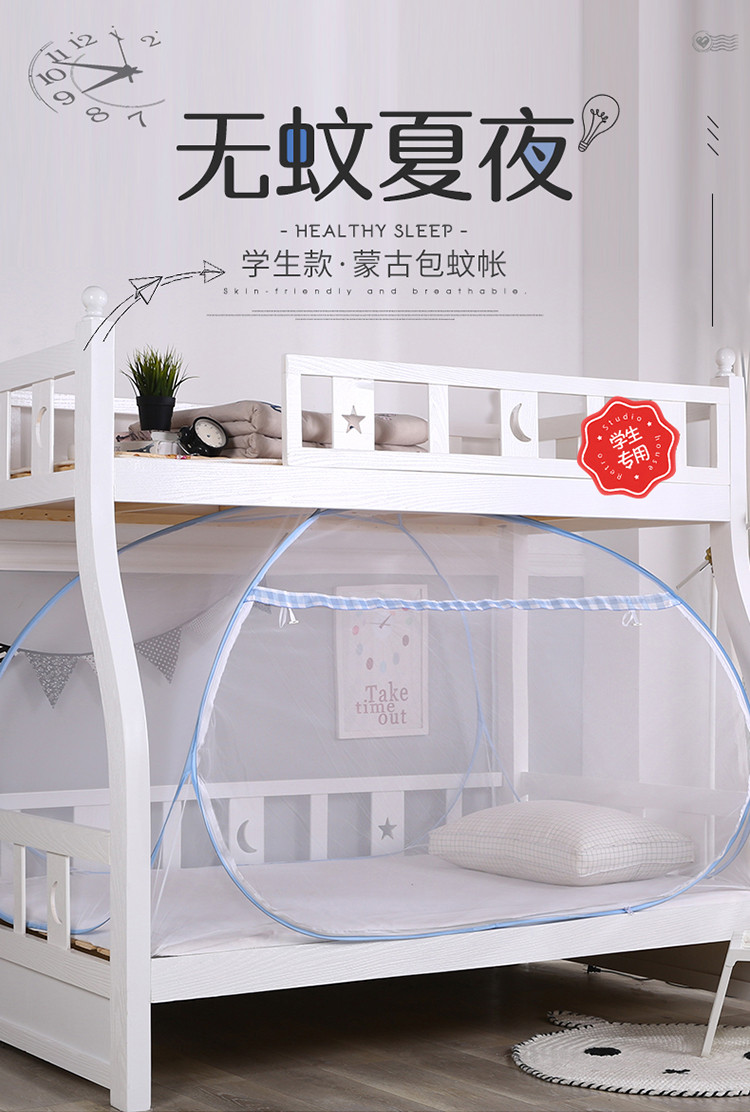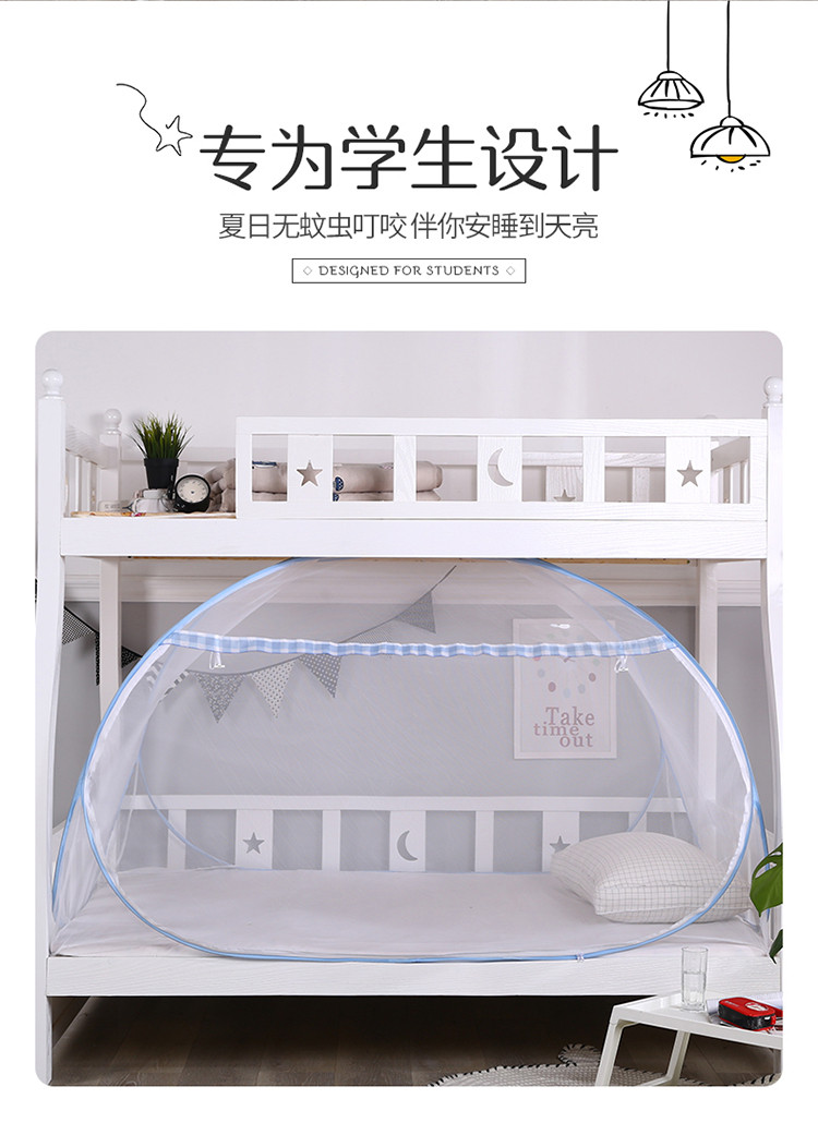 鸿和蚊帐 2023新款学生蚊帐蒙古包 英伦格-蓝色,英伦格-蓝色,英伦格-咖色