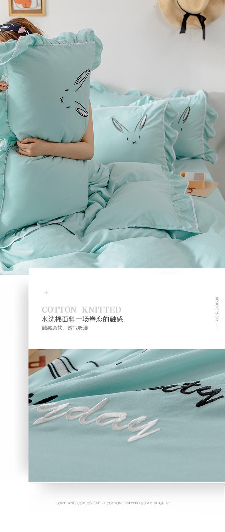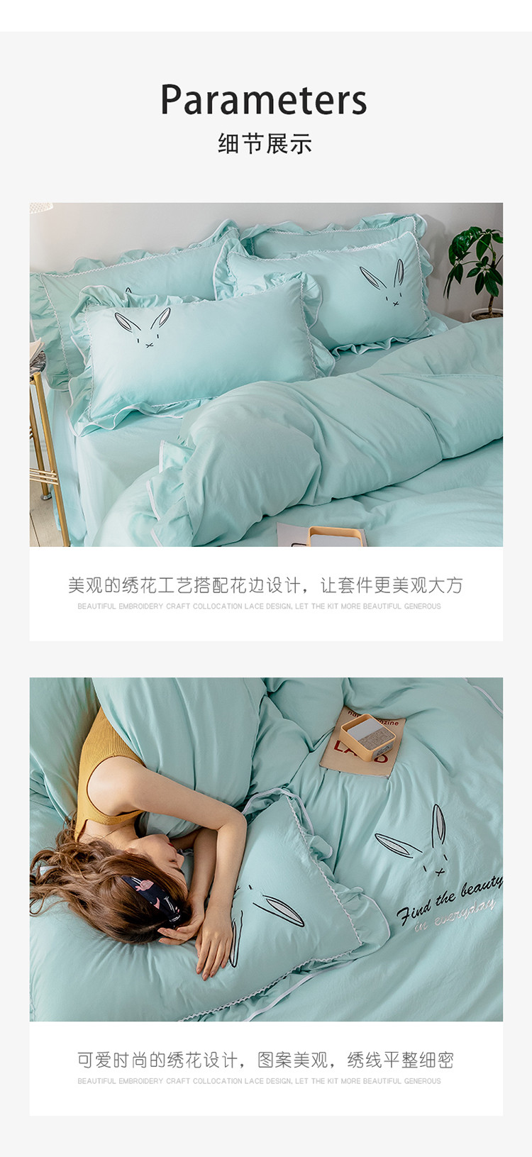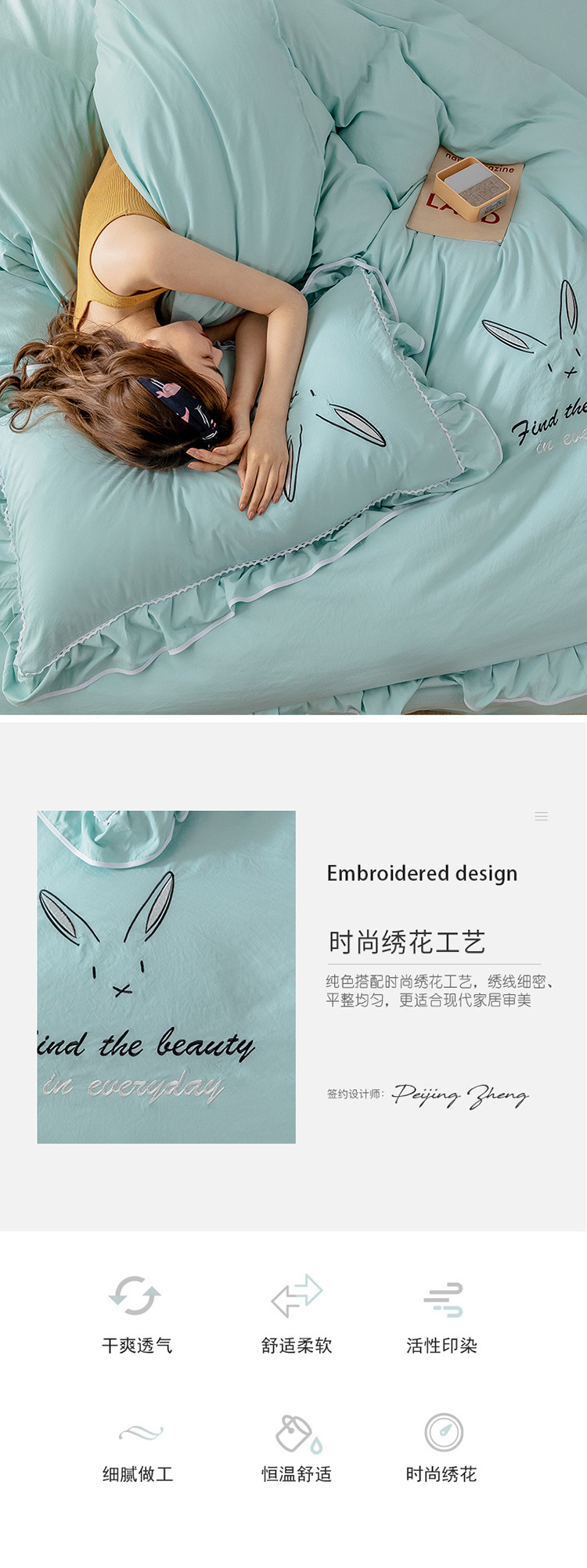 商品名称:ab家纺 2020新款兔耳朵绣花水洗棉四件套 水绿