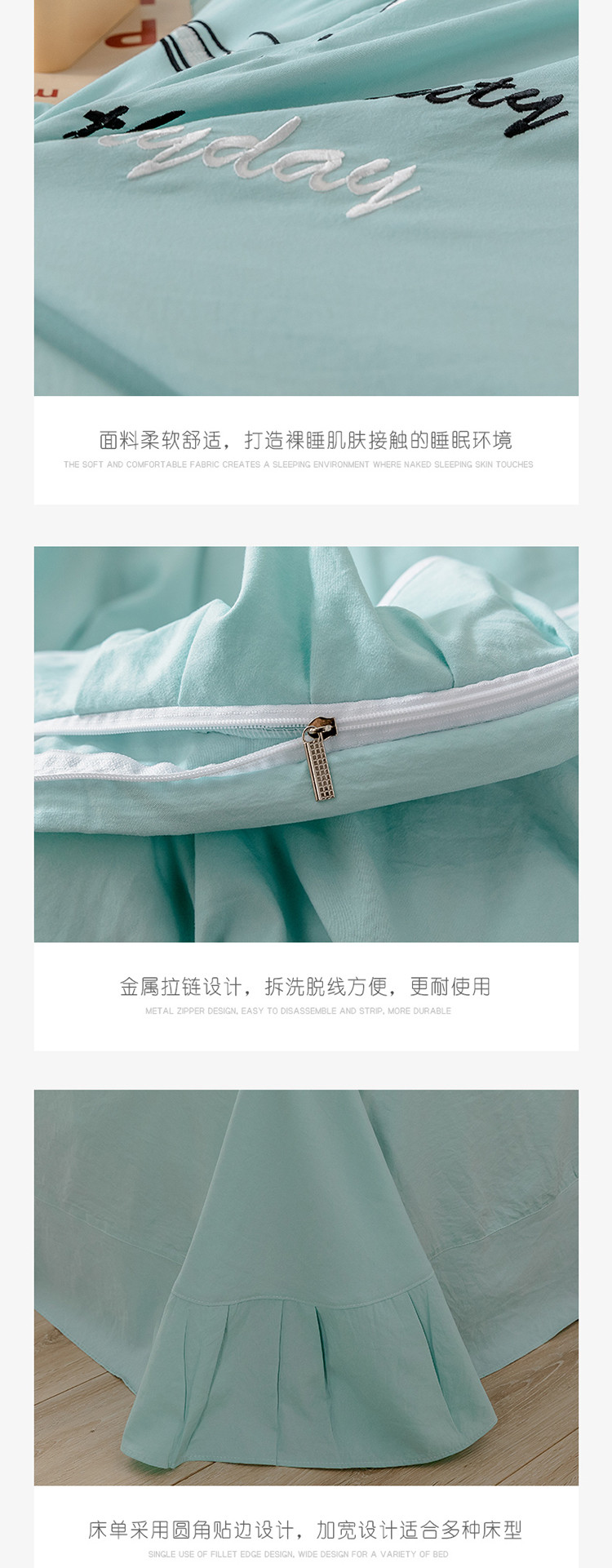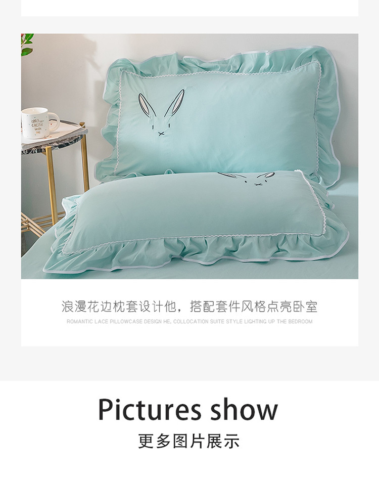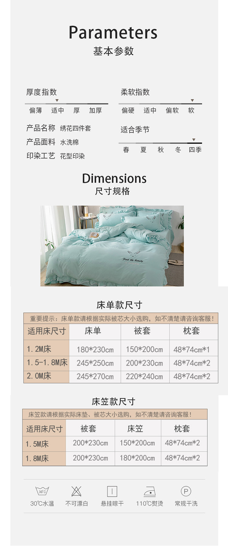 商品名称:ab家纺 2020新款兔耳朵绣花水洗棉四件套 水绿