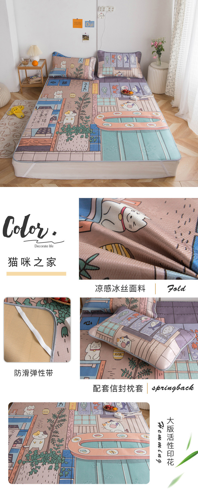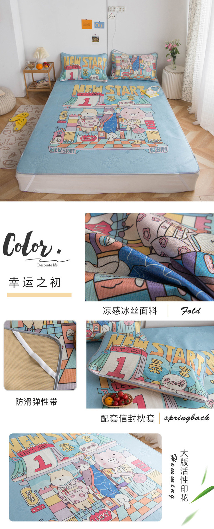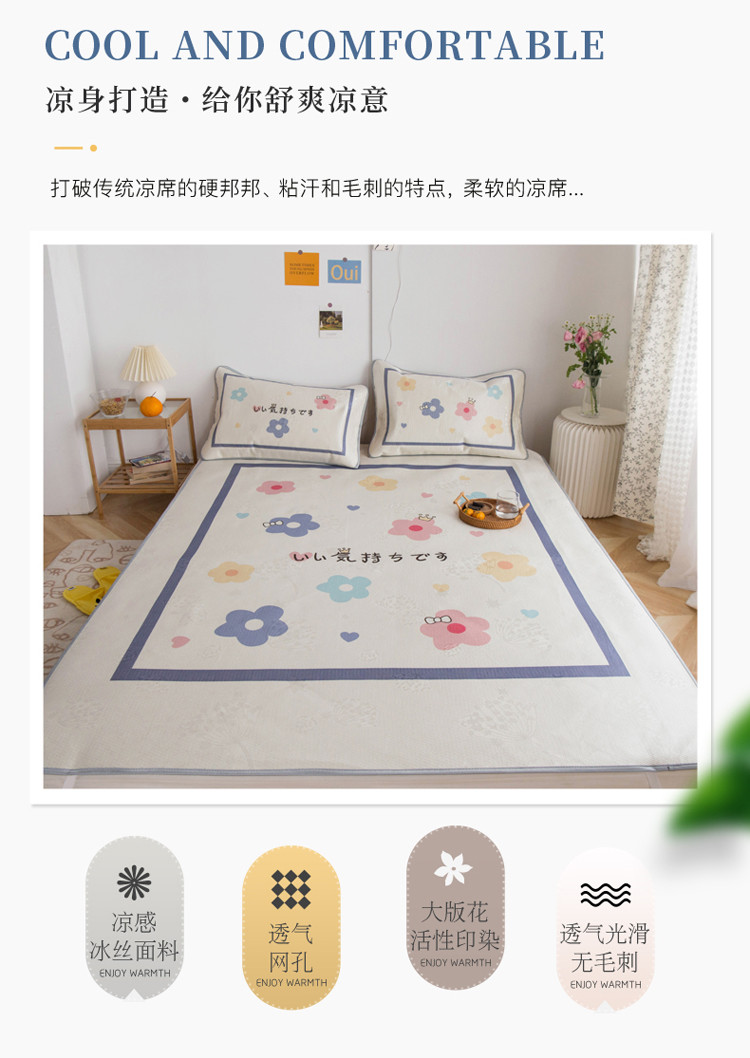 商品名称:总-同田家纺2023款数码大版印花卡通二次元冰丝三明治凉席