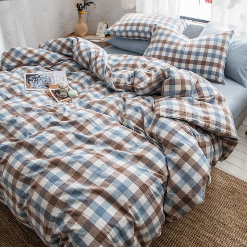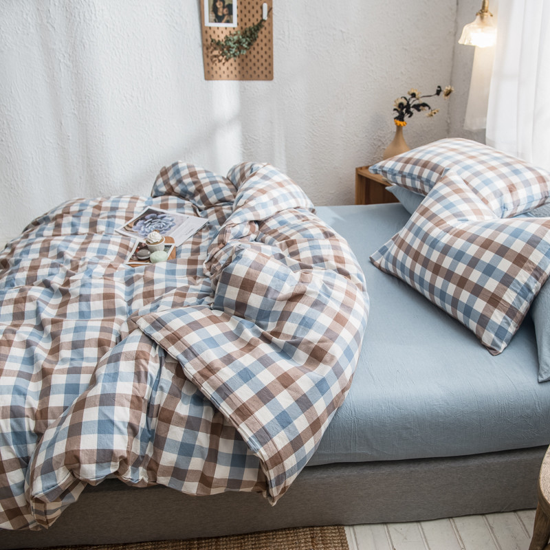佳梦达 2020新款全色织全棉水洗双拼单床笠 蓝白中格