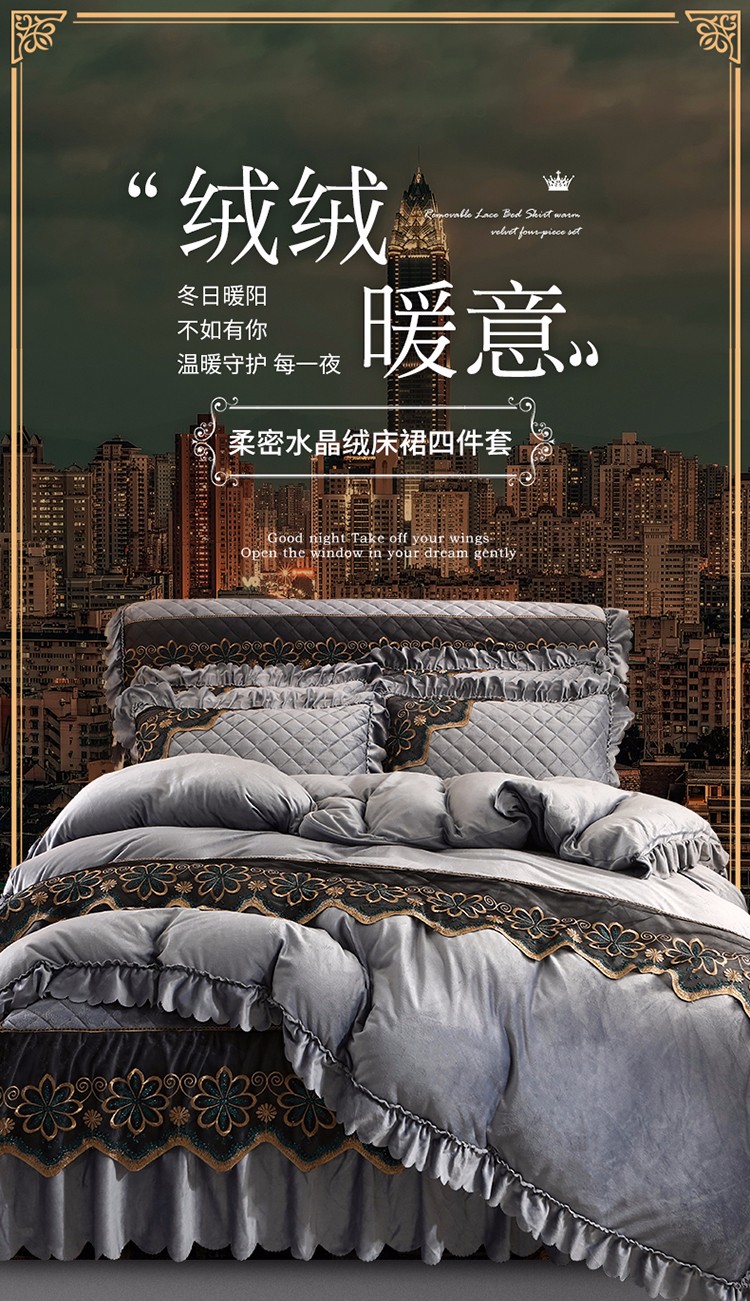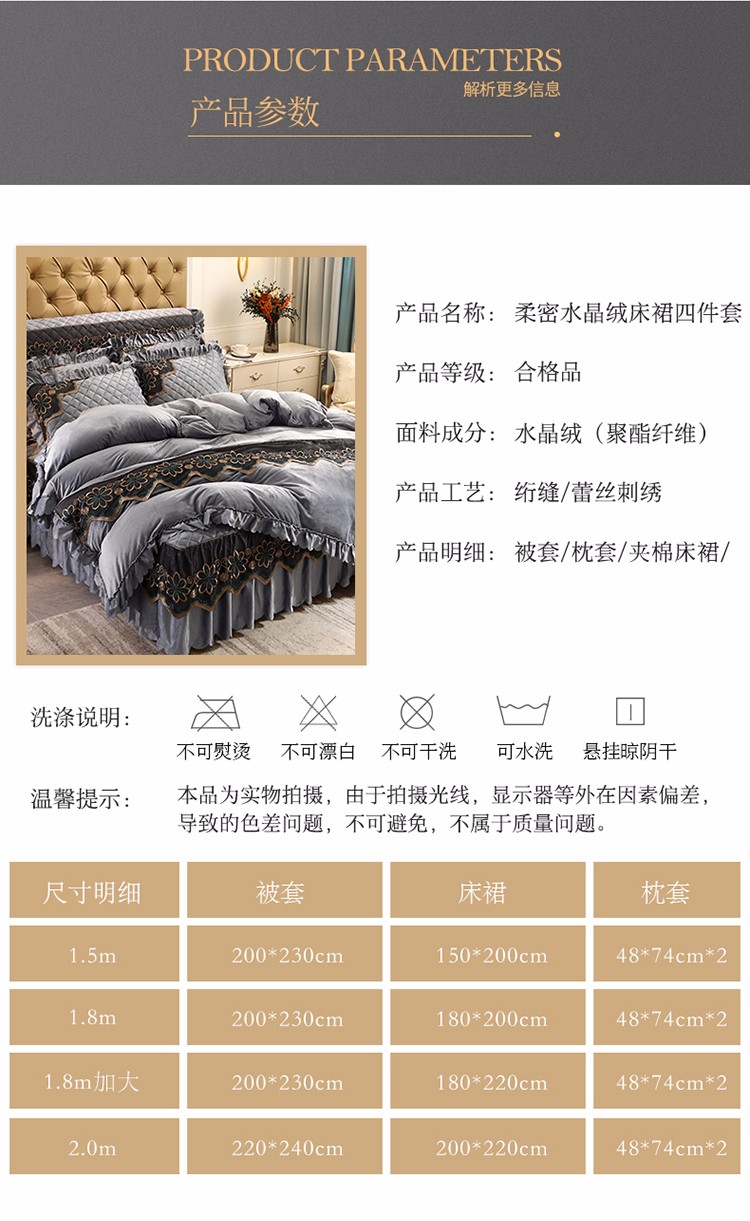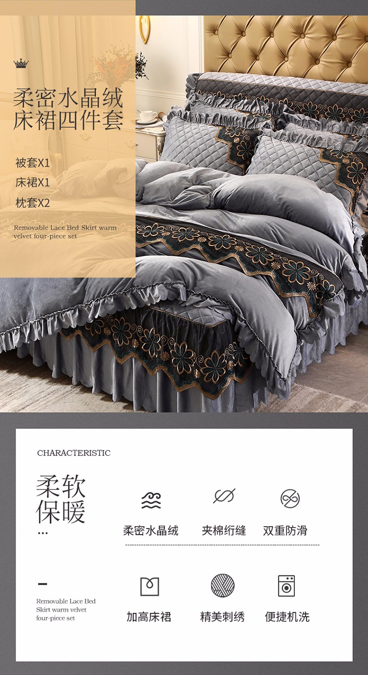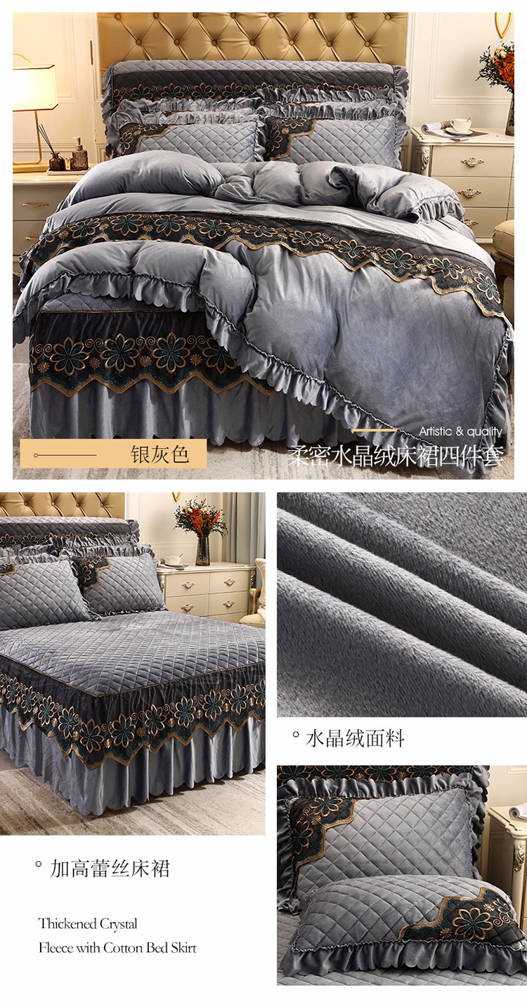 商品名称:情恒 2025新款水晶绒皇家豪庭系列四件套 银灰色