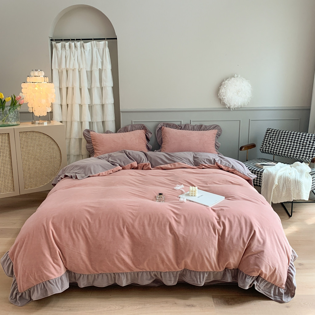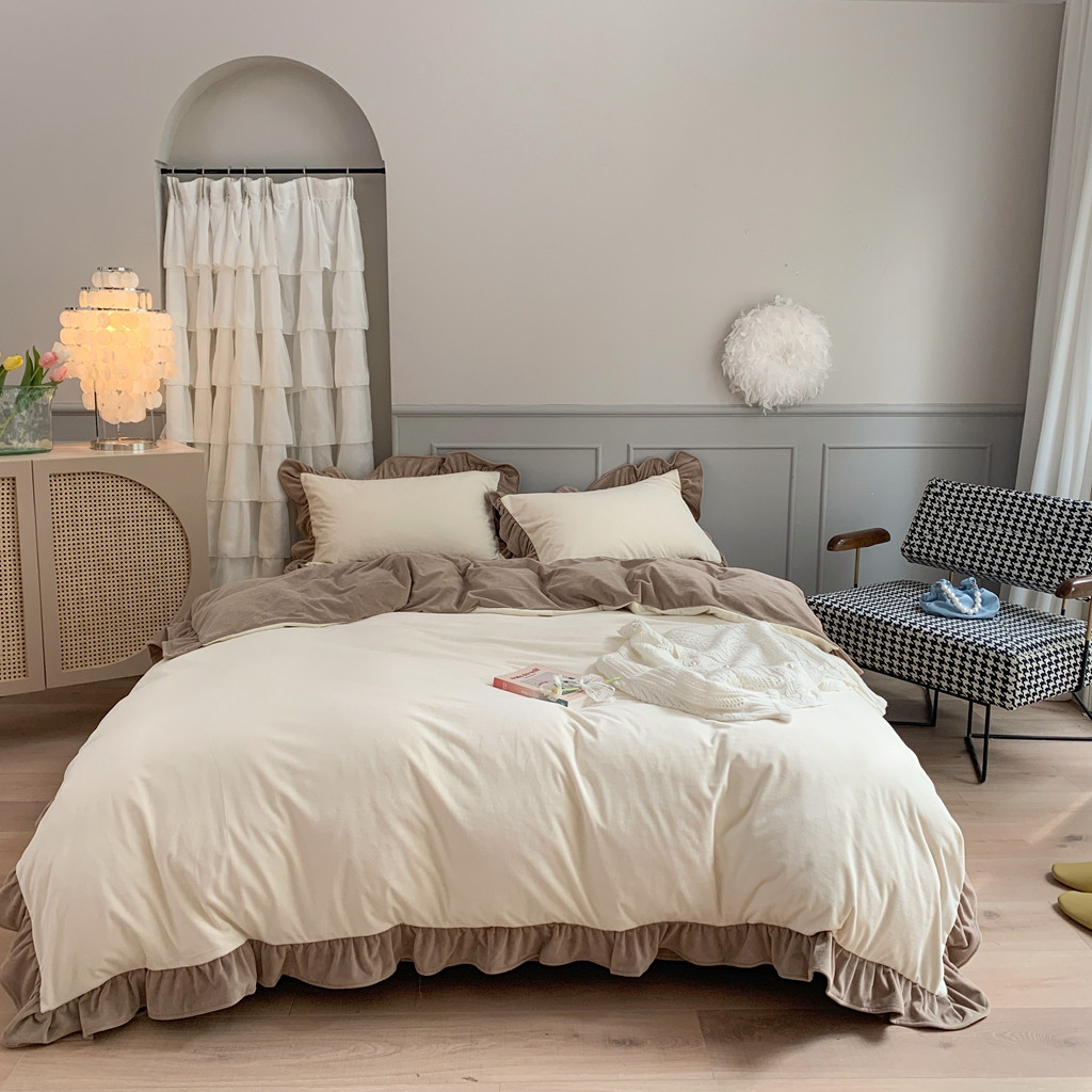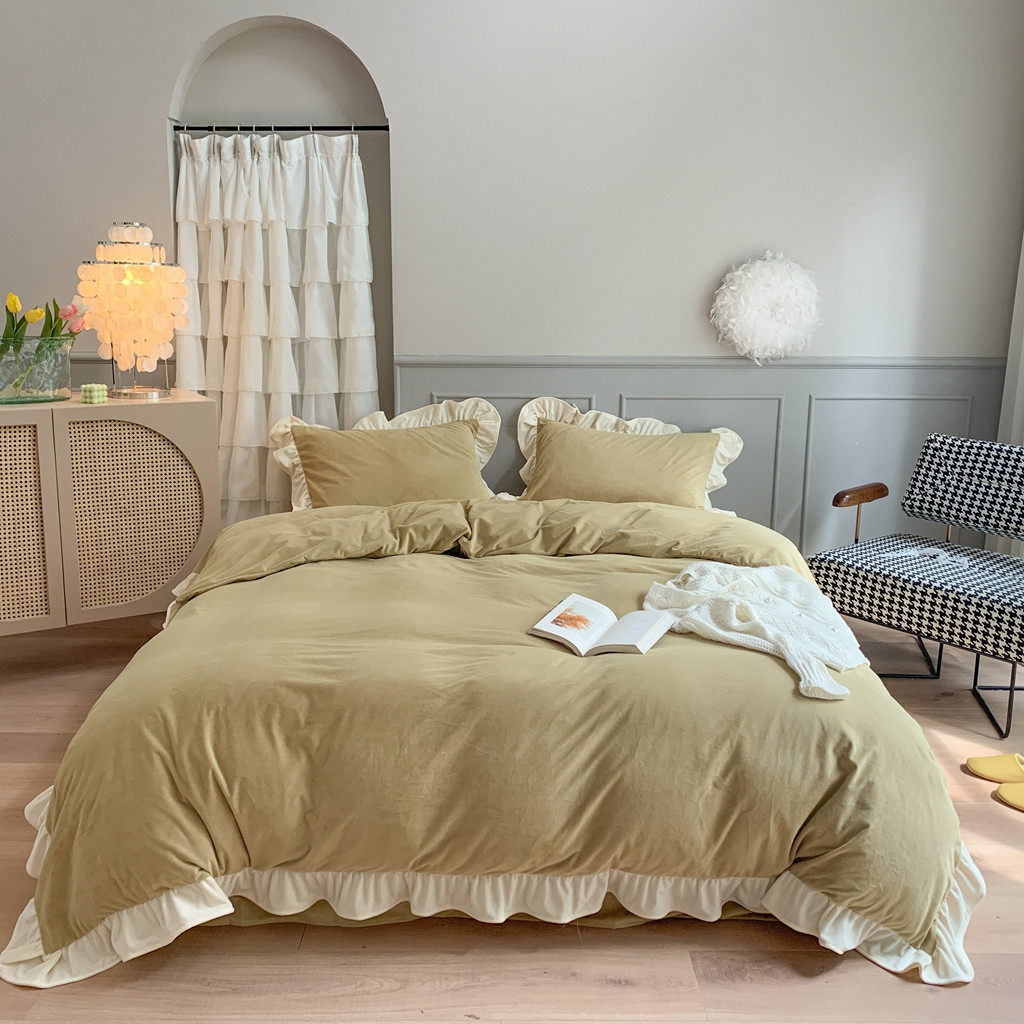 (总)时年 2021新款婴肤绒纯色花边款四件套