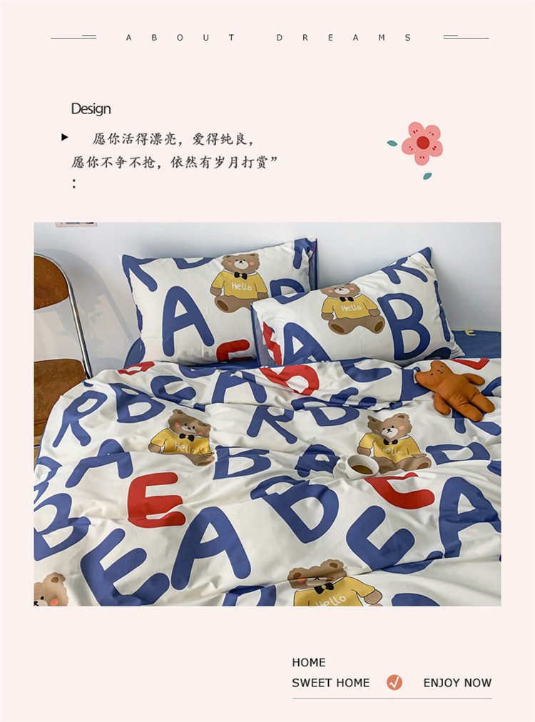 感遇 2021新款春夏新品全棉四件套纯棉三件套 AB熊