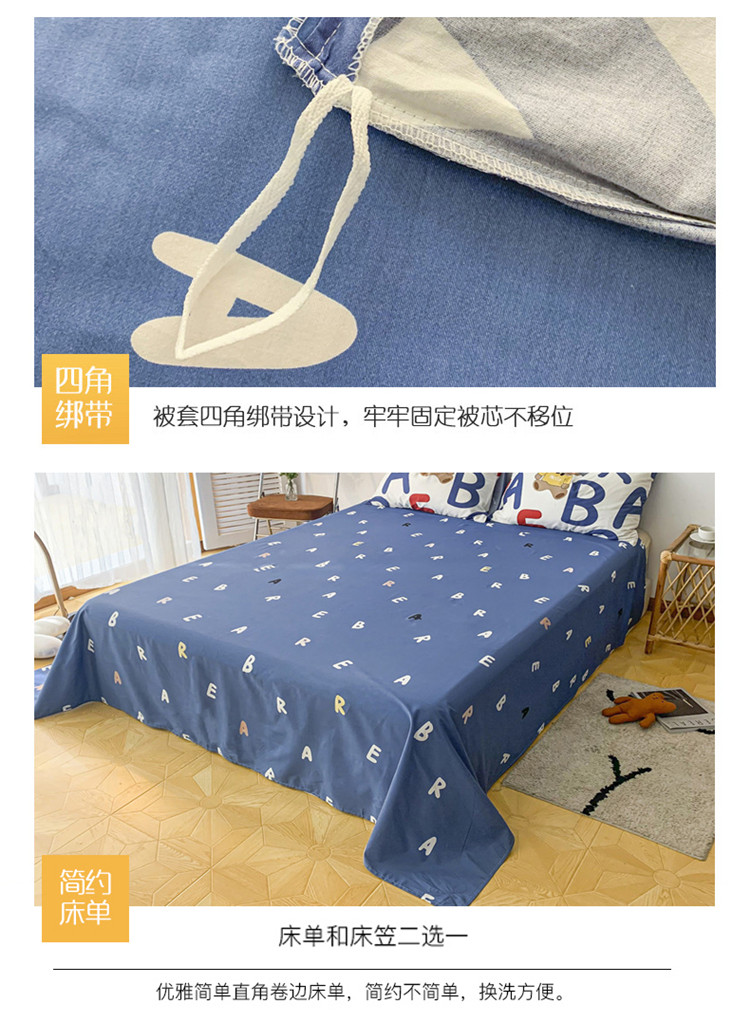 (总)感遇家纺 2022新款全棉印花四件套,格子小花,黑格恐龙,蓝色心情,浅暖