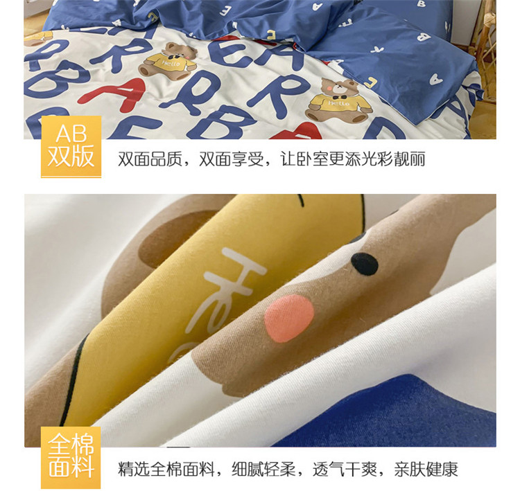 商品名称:感遇 2021新款春夏新品全棉四件套纯棉三件套 AB熊