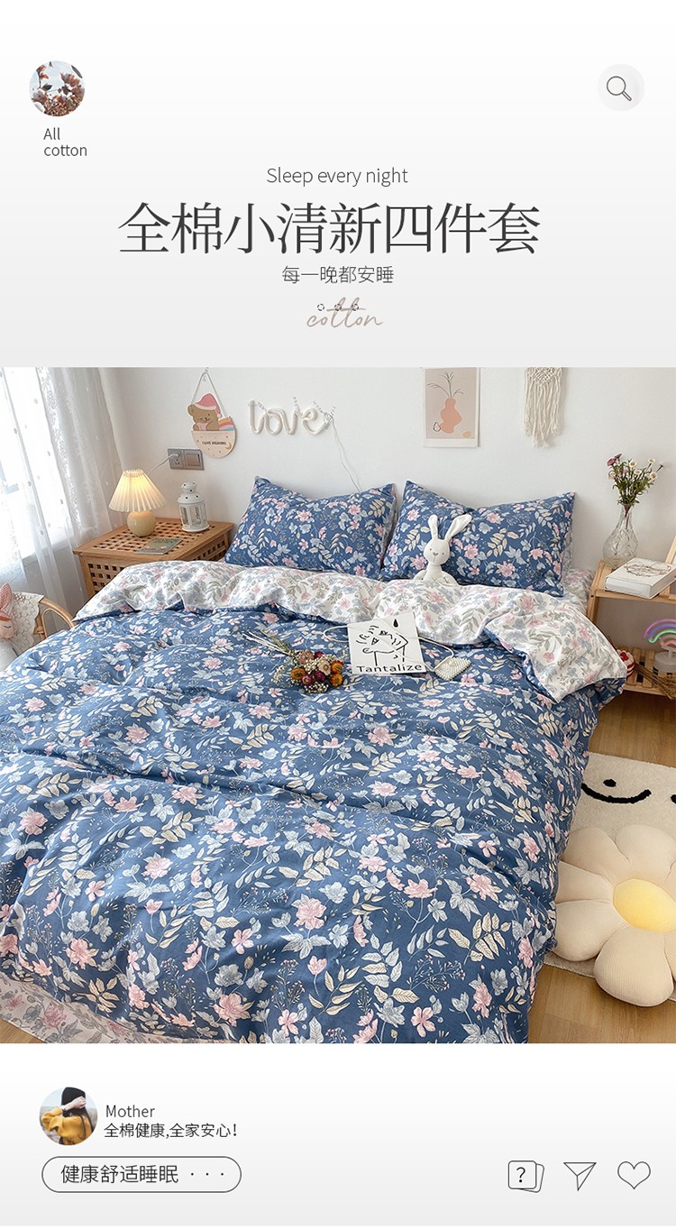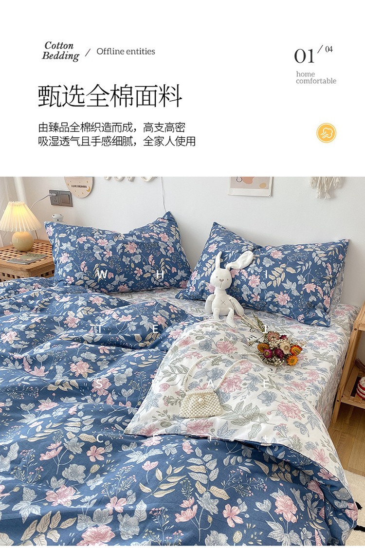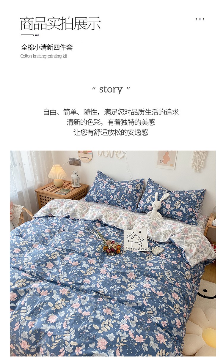 当前位置: 91家纺网 > 商品网购 > 床品套件 > 四件套 > 全棉普通四件套 > 沐棉 2021新款全棉小清新四件套花花系列 素雅