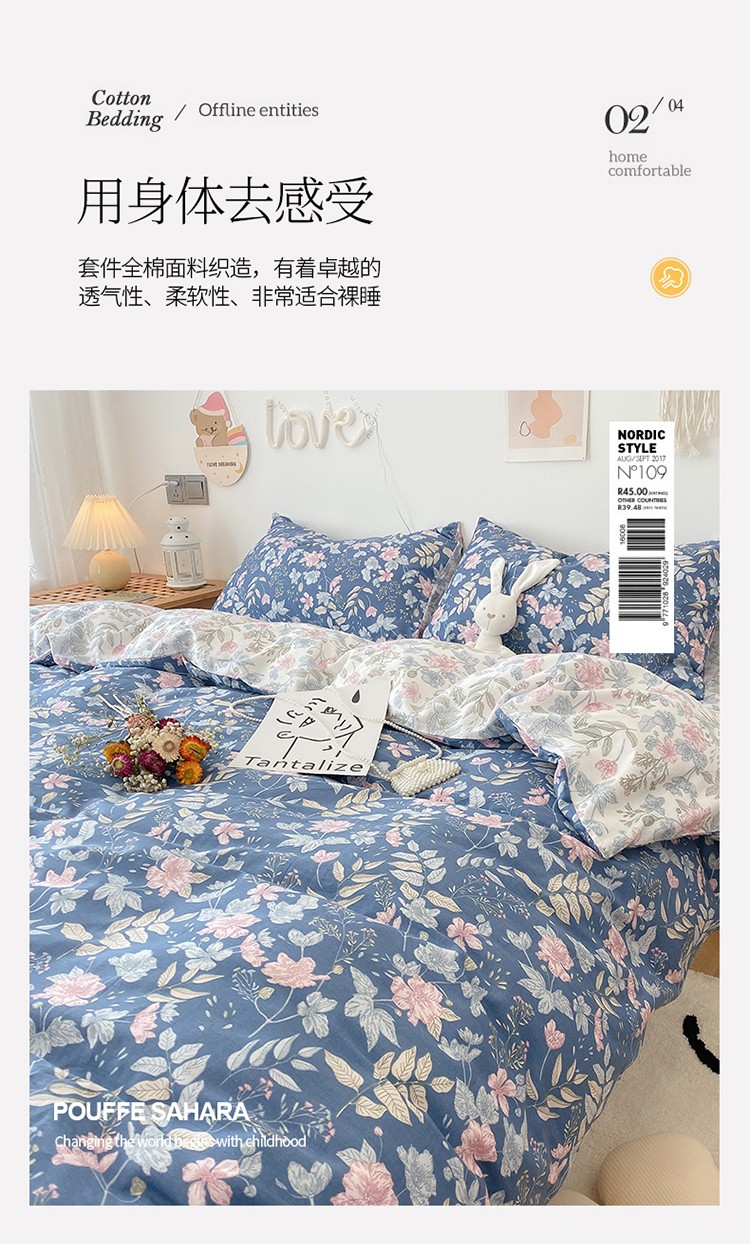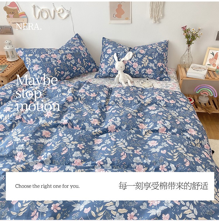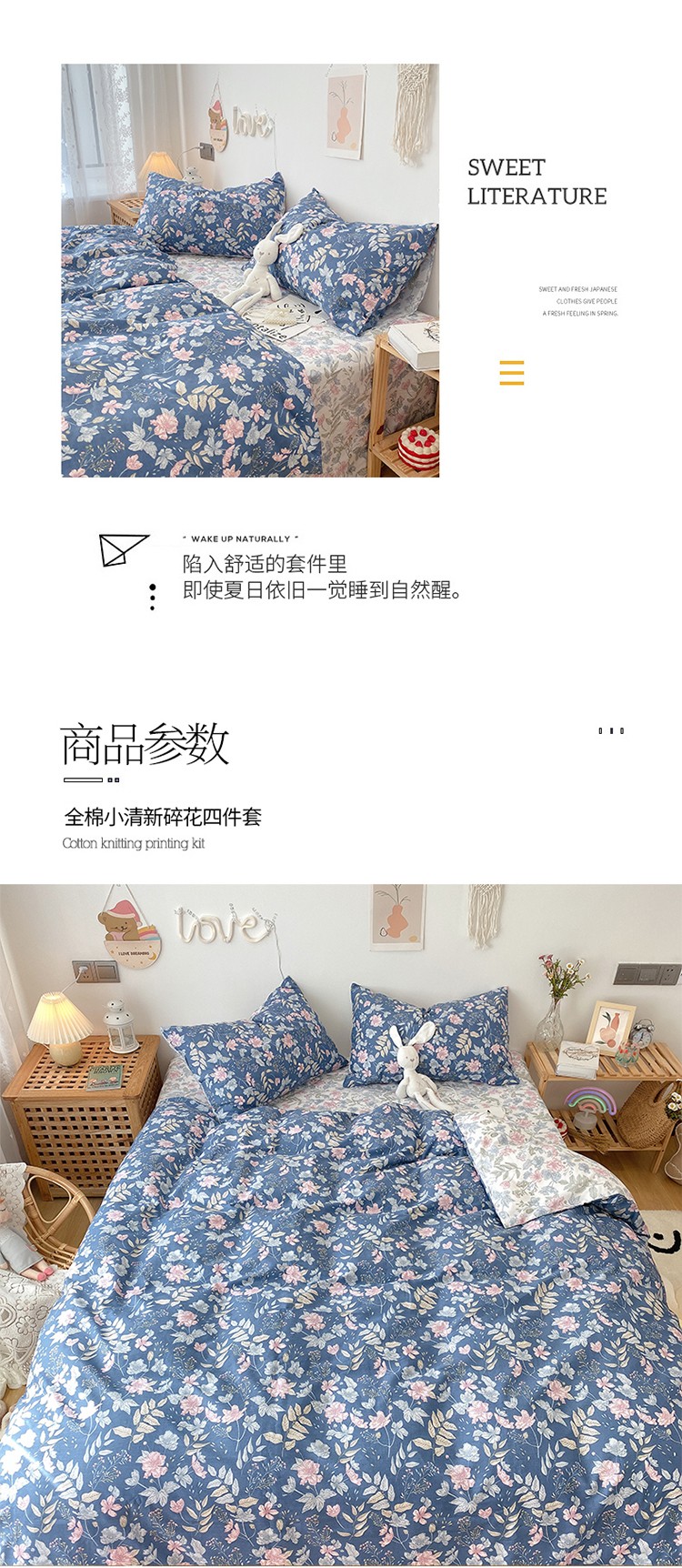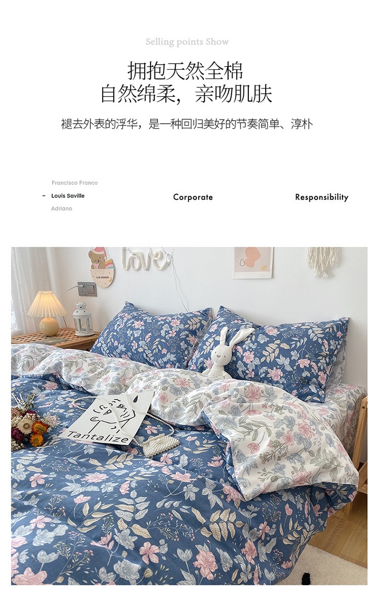 当前位置: 91家纺网 > 商品网购 > 床品套件 > 四件套 > 全棉普通四件套 > 沐棉 2021新款全棉小清新四件套花花系列 素雅