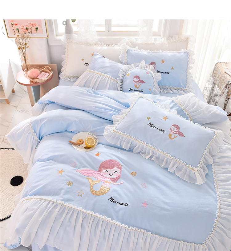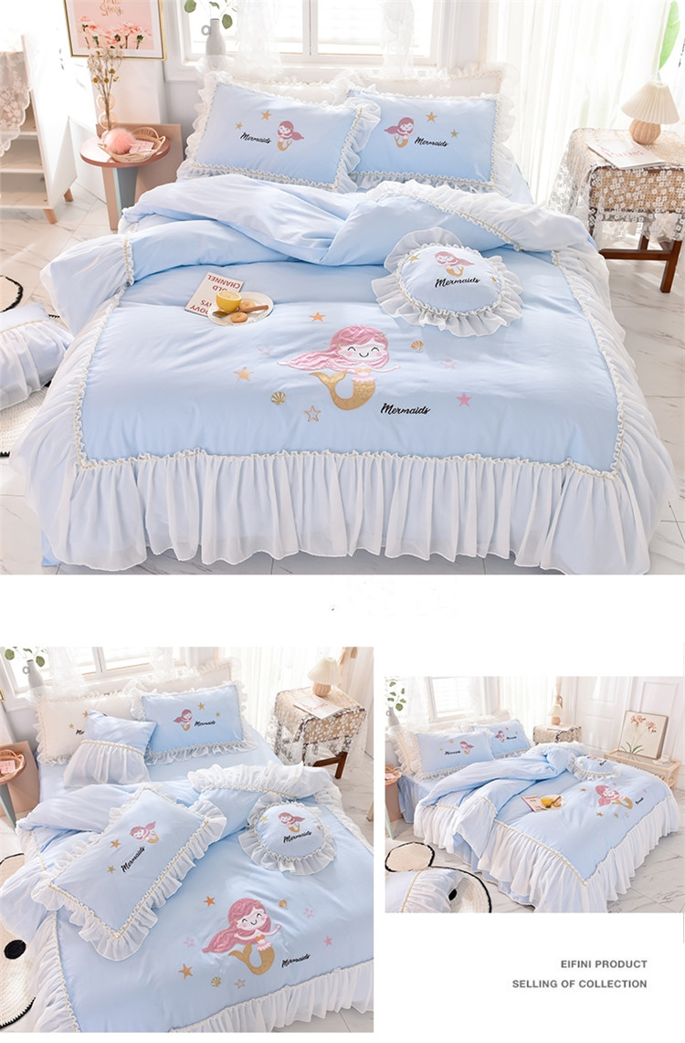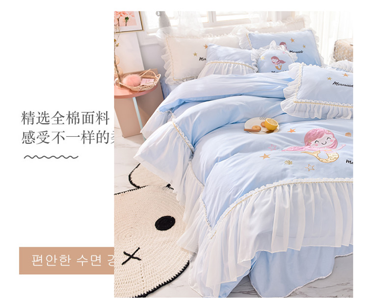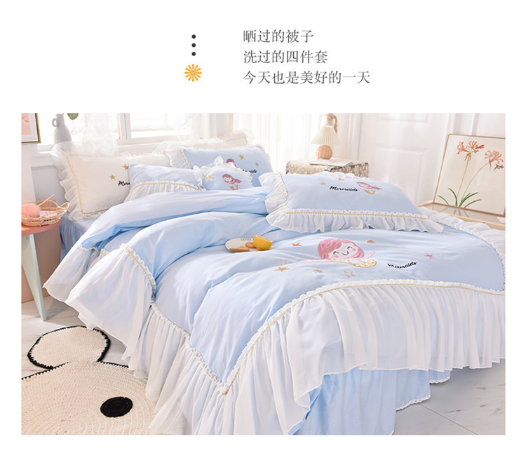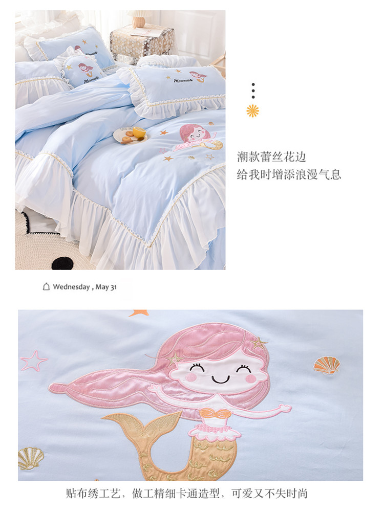 当前位置: 91家纺网 > 商品网购 > 床品套件 > 四件套 > 全棉活性四件套 > 花香四季2023新款13376纯棉美人鱼四件套美人鱼-蓝
