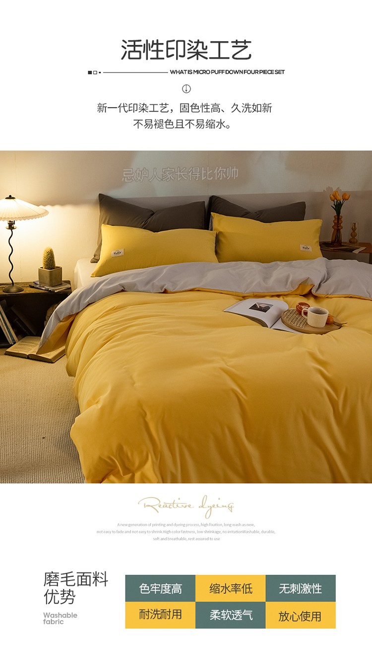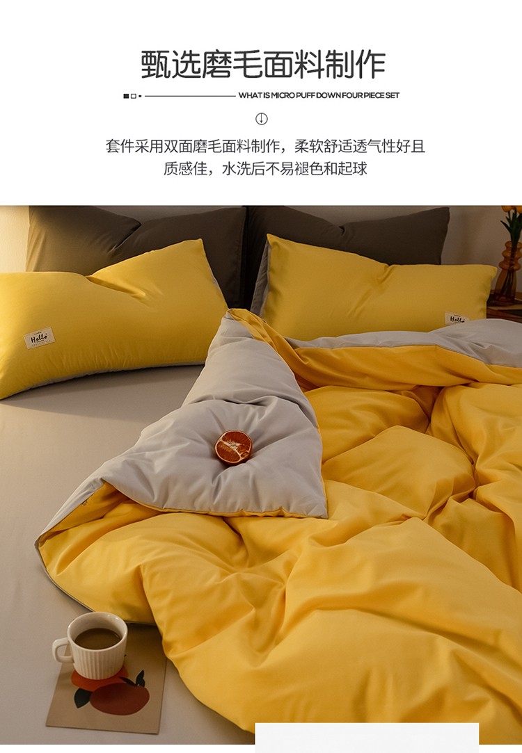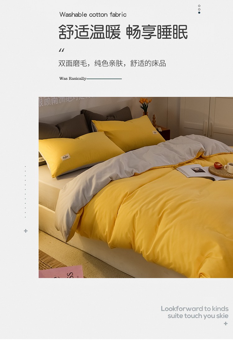 当前位置: 91家纺网 > 商品网购 > 床品套件 > 四件套 > 普通磨毛四件套 > 雨帆家纺 2021新款双面磨毛四件套 奶黄+奶灰
