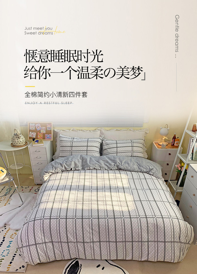 田野家纺 2021新款初夏全棉四件套 千鸟