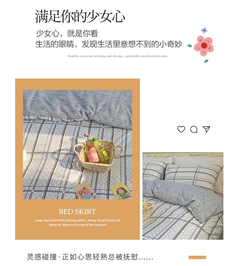 (总)田野 2022新13372全棉印花小清新四件套纯棉床笠,比心,哈喽虎-黄,哈喽虎-蓝,铃兰花,绿茵,梦的旋律,墨璃,晚安虎,印象