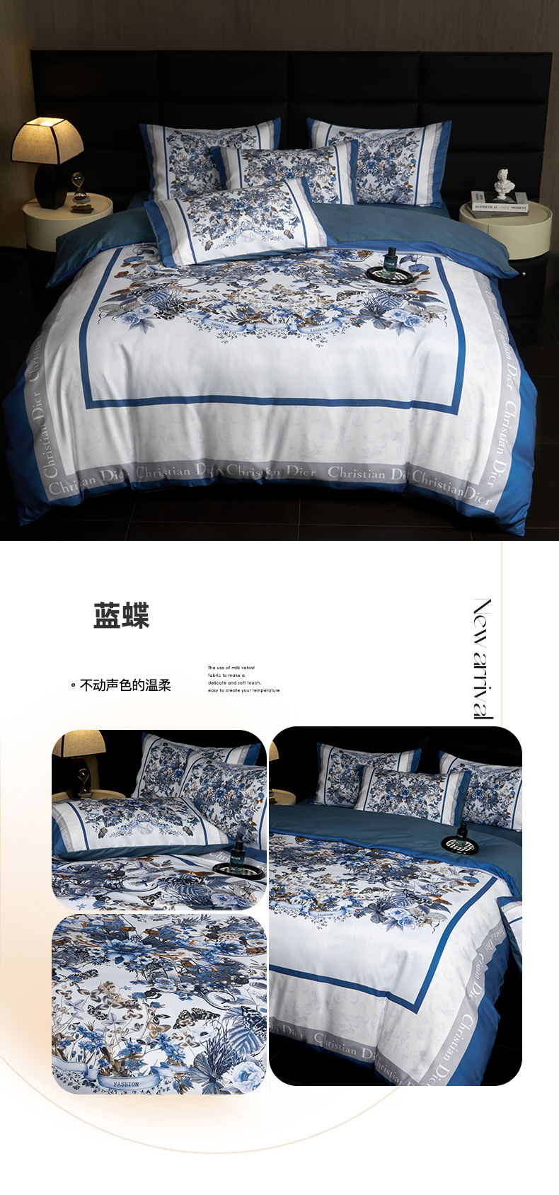 (总)花沐家居 2025新款 潮牌亲肤纯棉四件套,lA蓝,白香,豹纹迪,古拼,黑香,橘马,兰迪,绿色花朵