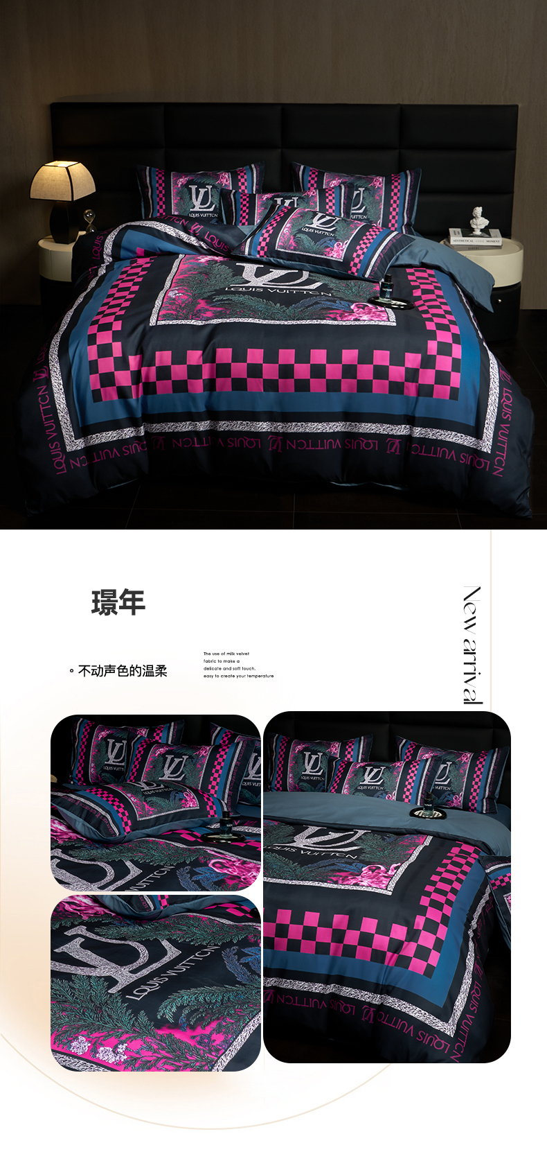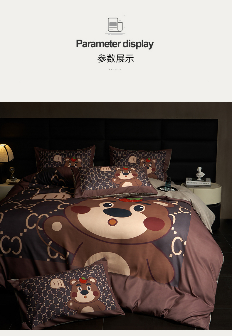(总)花沐家居 2025新款数码印花潮牌云朵棉四件套,白色小香,粉豹纹,黑白老花,黑色小香,花千树,景年,蓝幕,绿色花朵,兮兔,小白熊,小黑熊,英伦熊