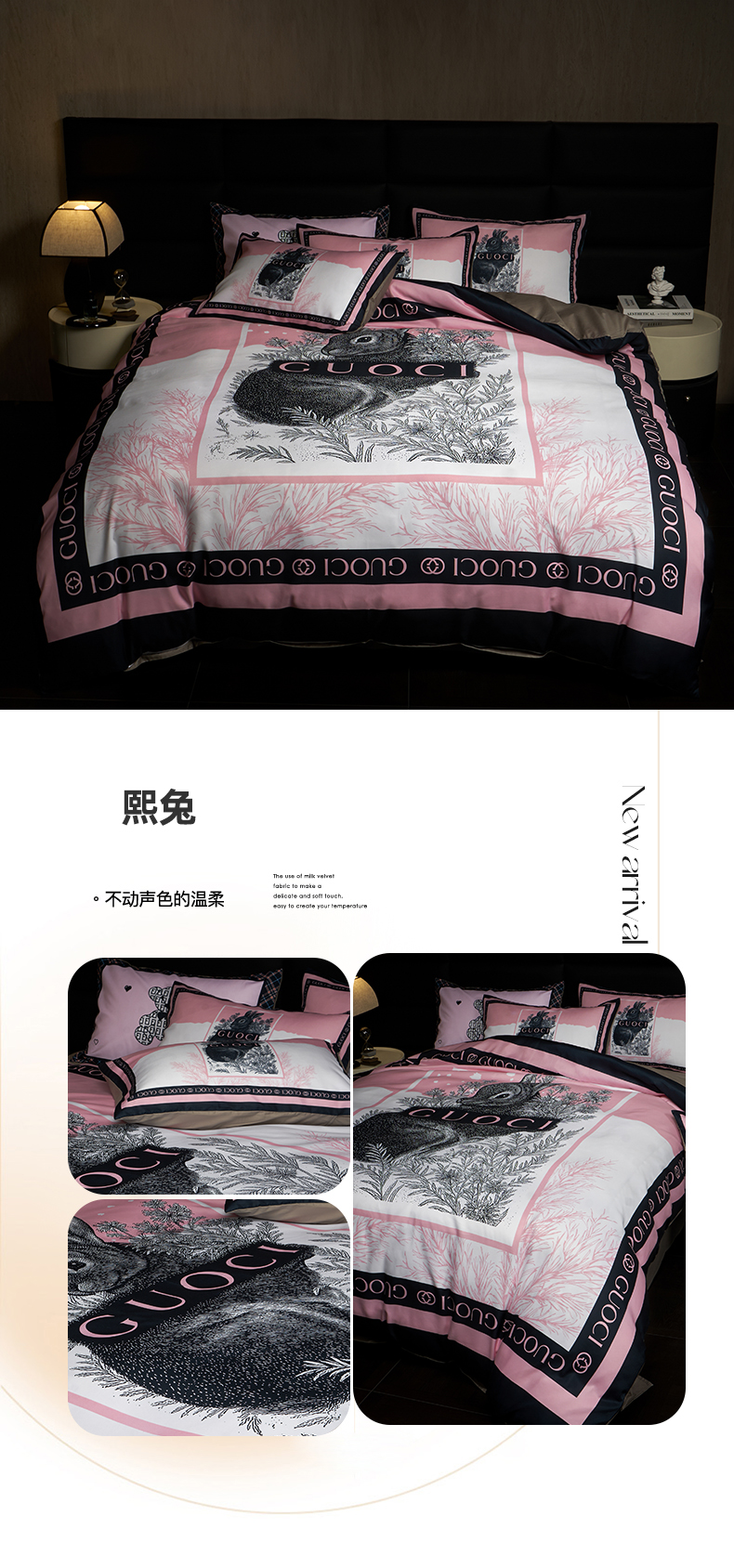 (总)花沐家居 2023新款活性数码印花牛奶绒四件套-场景1,白色字母熊,黑白金范,黑白熊,黑色花朵,渐变熊,条纹,小白熊,小粉熊,小古黑花,小黑熊,小香风字母,字母熊
